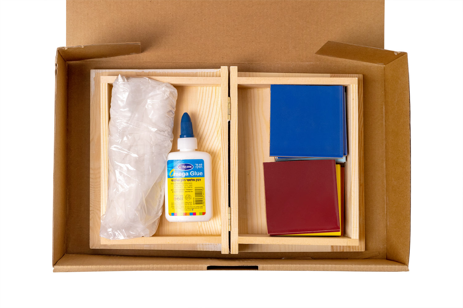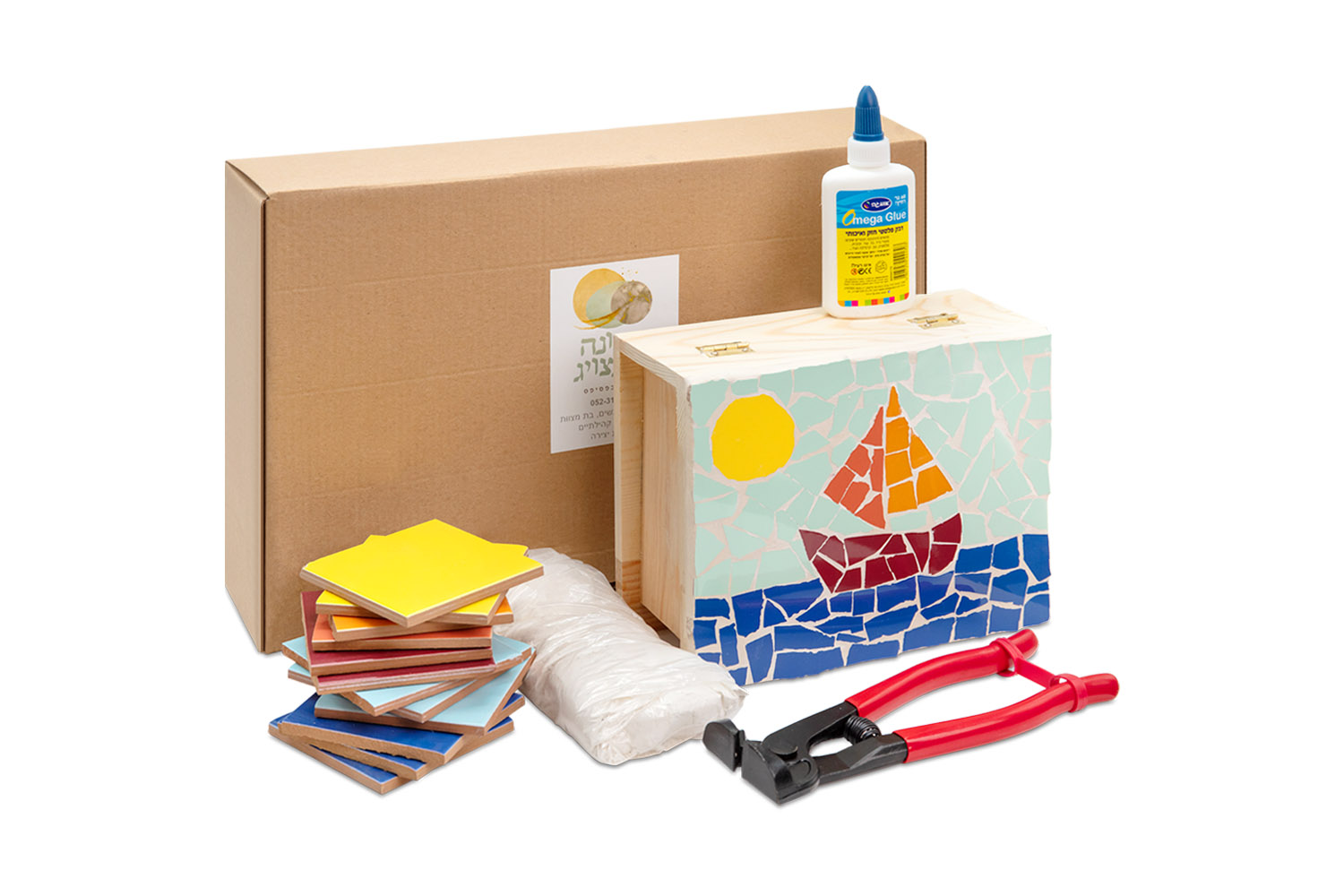Each kit comes complete with a wooden base, colored ceramic tiles, glue, and a pair of tile nippers for cutting tiles. The craft set includes a video with detailed instructions to guide your project.