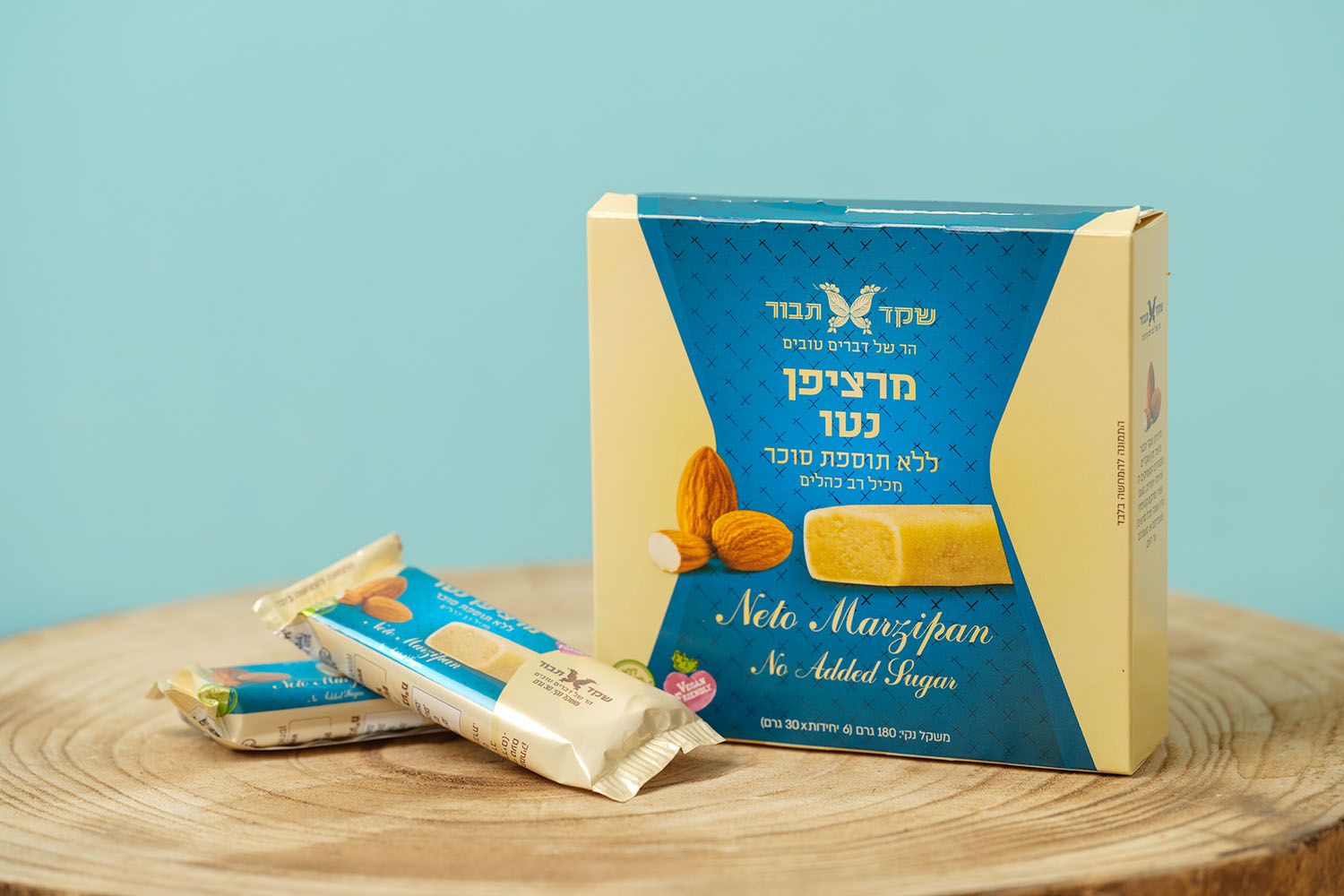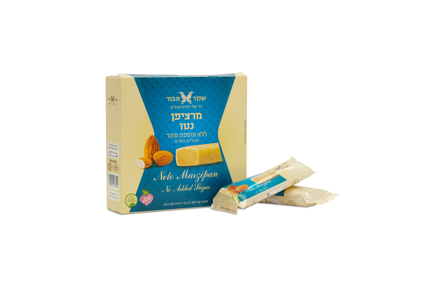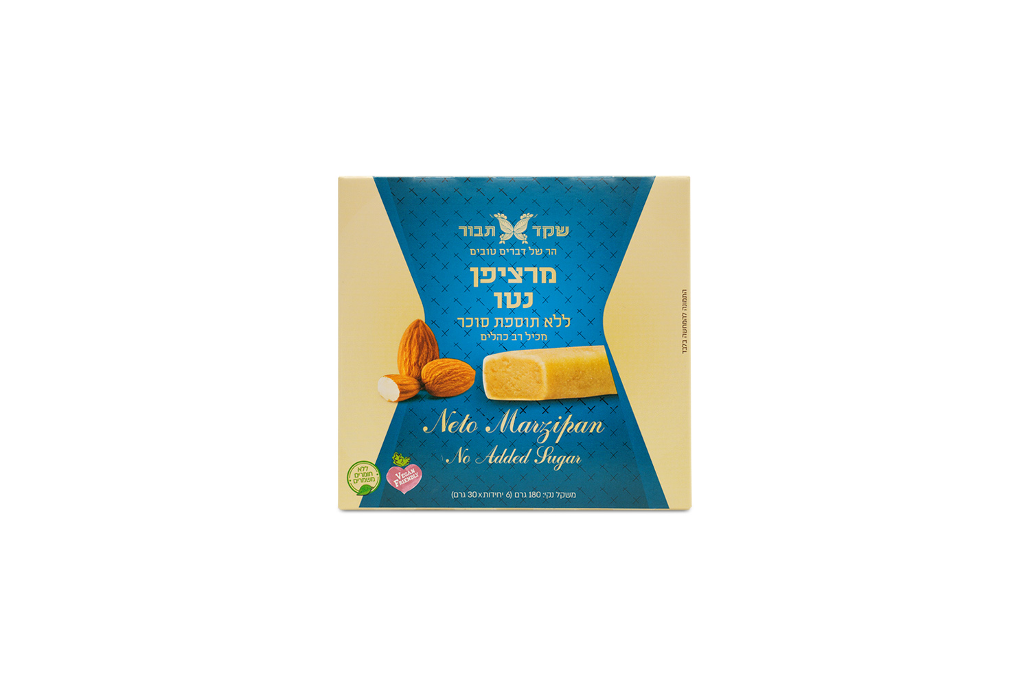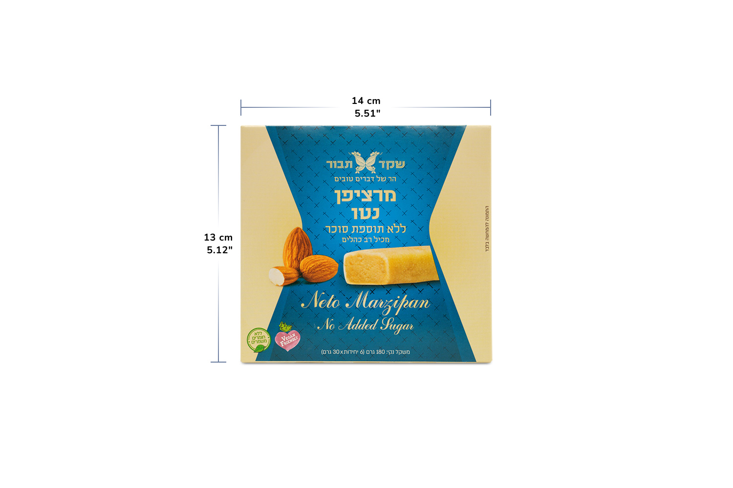 Each batch is ground slowly to preserve that fragrance, giving the marzipan its tender texture and gentle, lingering almond flavor. Inside every box, you’ll find six individually wrapped bars, each one shaped by a producer who knows the land, the trees, and the work like the back of their hand. The marzipan is crafted in small quantities so the Shaked Tavor family can keep their focus on the quality – along with its signature softness, aroma, and a clean, honest flavor without added sugar or preservatives.