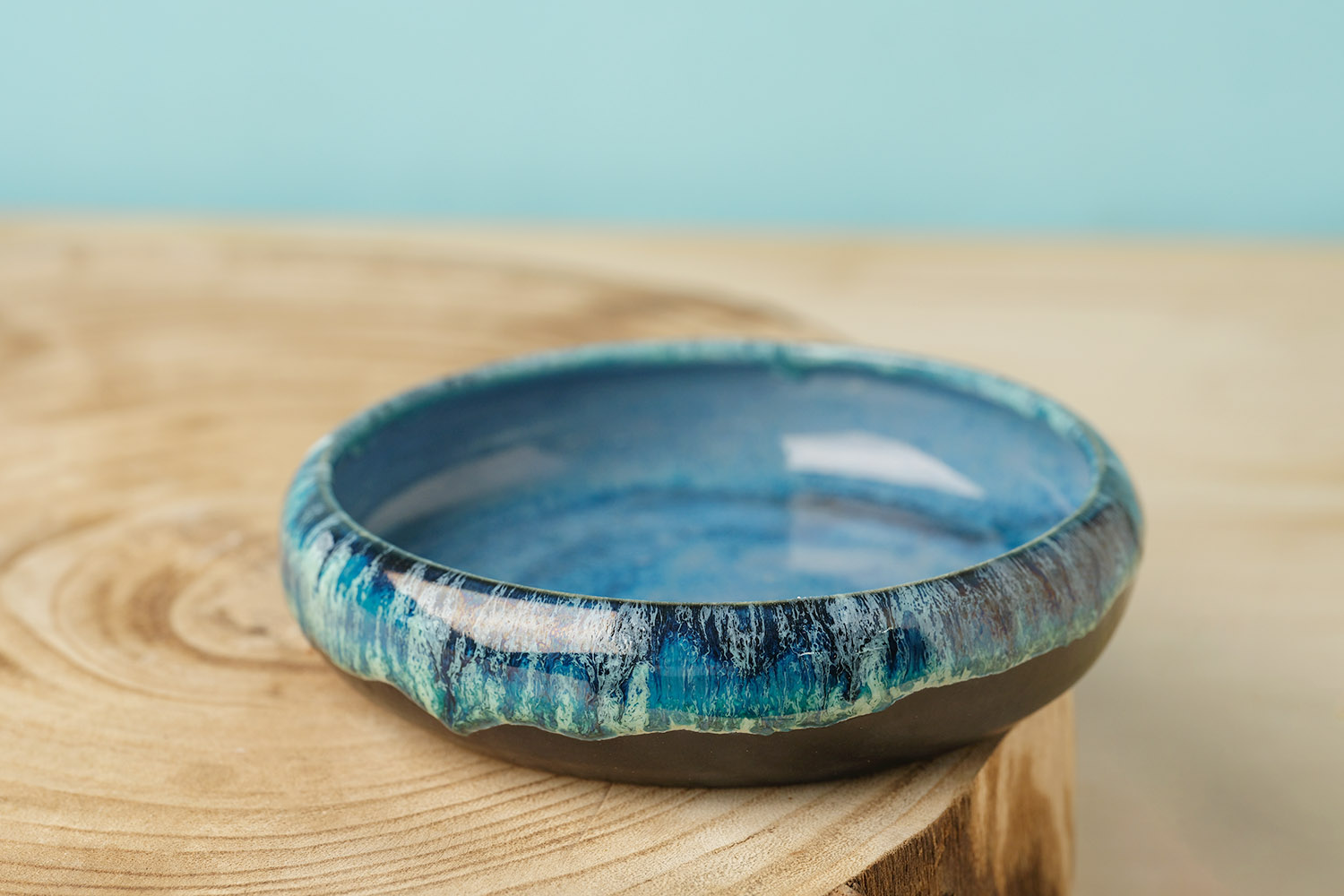 - Unique glaze pattern in desert blues and greens — no two are identical