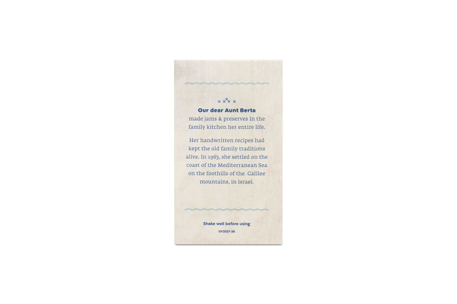 Each jar tells the story of Berta herself, a woman who settled near the Mediterranean coast in 1963 and spent a lifetime preserving the recipes passed down through her family. She made her jams the old way – with handwritten instructions, long-simmered fruit, and ingredients selected with intention. That same legacy lives on today in Zikhron Ya’akov, where her family still produces this spread in small batches, using the same principles that guided her hand.