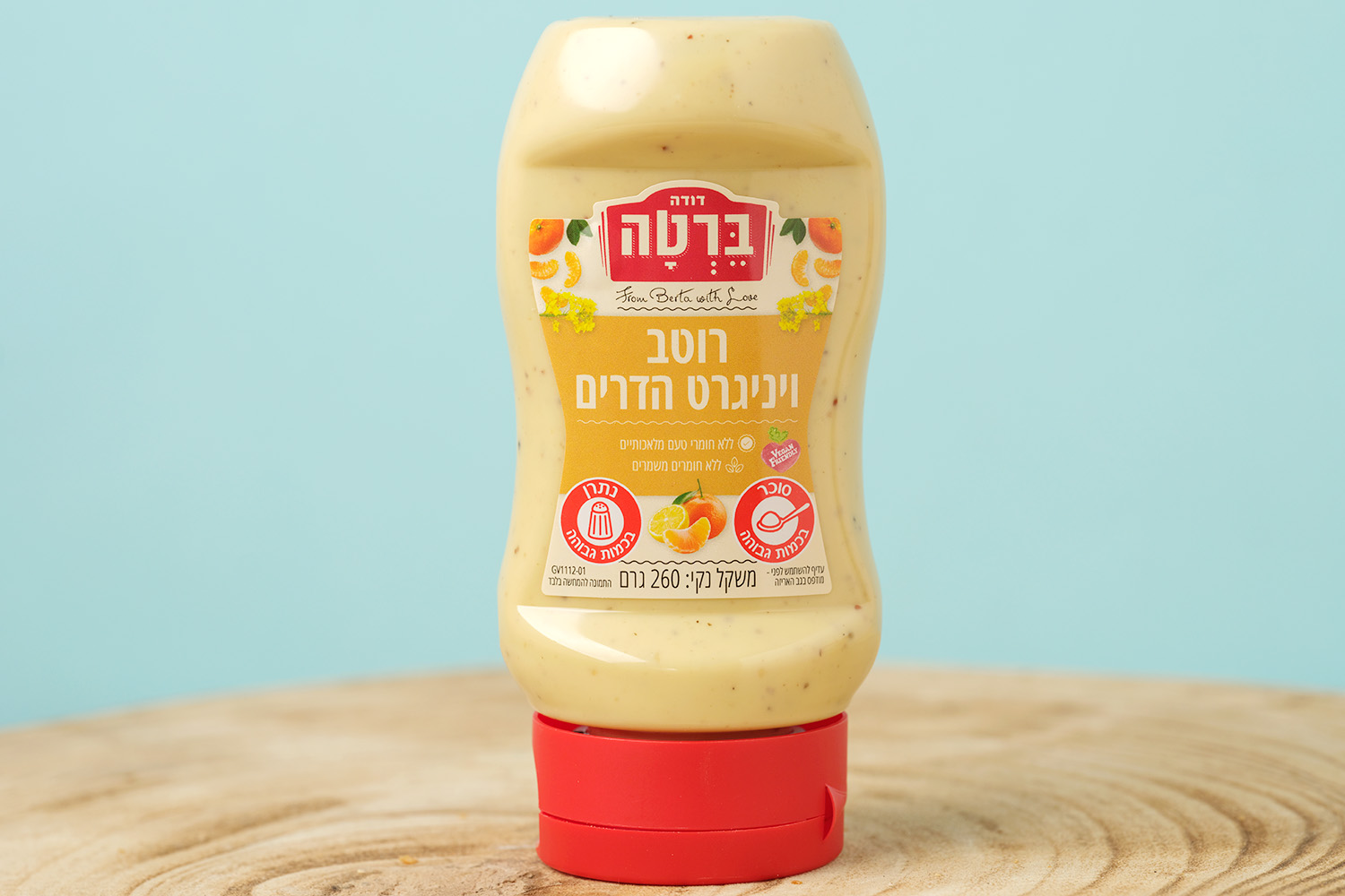 Aunt Berta is a family producer shaped by decades of homegrown Galilean cooking. Their sauces and preserves draw from the founder’s heritage—recipes rooted in patience, simplicity, and the kind of kitchen where fruit, vegetables, and spices were always within reach. Today, that spirit continues in their modern facility, where each dressing is made with care, reflecting the company’s quiet devotion to craft and the land around them. This vinaigrette carries that feeling: clean, bright, and prepared with the steady touch of a small Israeli producer.