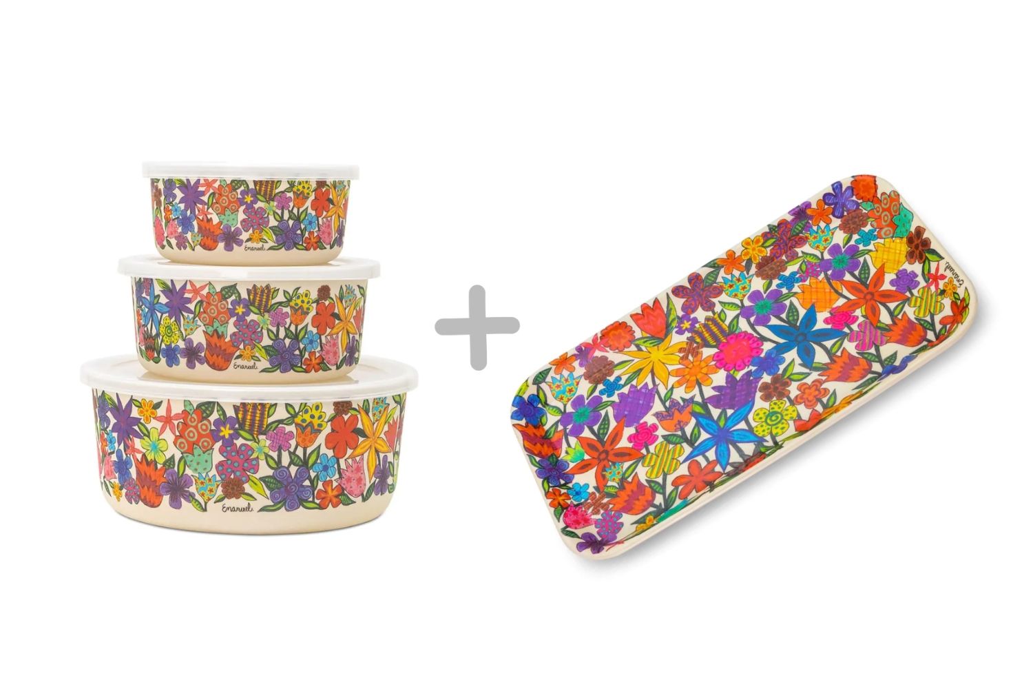 Bamboo Flowers Nesting Dishes & Serving Tray