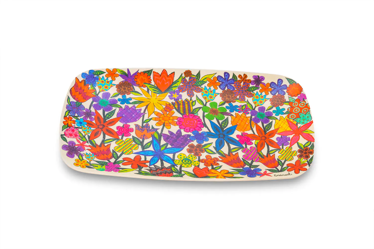 Yair Emanuel, one of Israel’s leading Judaica artists, has added a colorful touch to serving with a unique set of three nesting bamboo bowls, each featuring a bright and cheerful flower design. Perfect for serving salads, snacks, or desserts, these bowls also make storing leftovers a breeze with snug-fitting plastic lids. The vibrant design, reminiscent of Israeli wildflowers, brings a happy, colorful touch of the Holy Land into your home. These stylish, practical bowls nest together for easy storage and make thoughtful gifts for any occasion, from birthdays to hostess gifts. Additionally, Emanuel’s bamboo serving tray, adorned with similar colorful flowers, can be used for serving snacks, drinks, or as a lovely accent piece. Whichever way you choose to use them, these items will remind you of Israel’s beauty and charm!