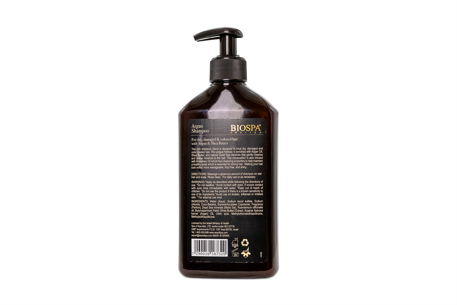 Israel’s Sea of Spa Argan Shampoo is enriched with active natural Dead Sea minerals, Argan oil, and Shea butter that gently cleanse your hair, leaving it soft, smooth, and healthy.