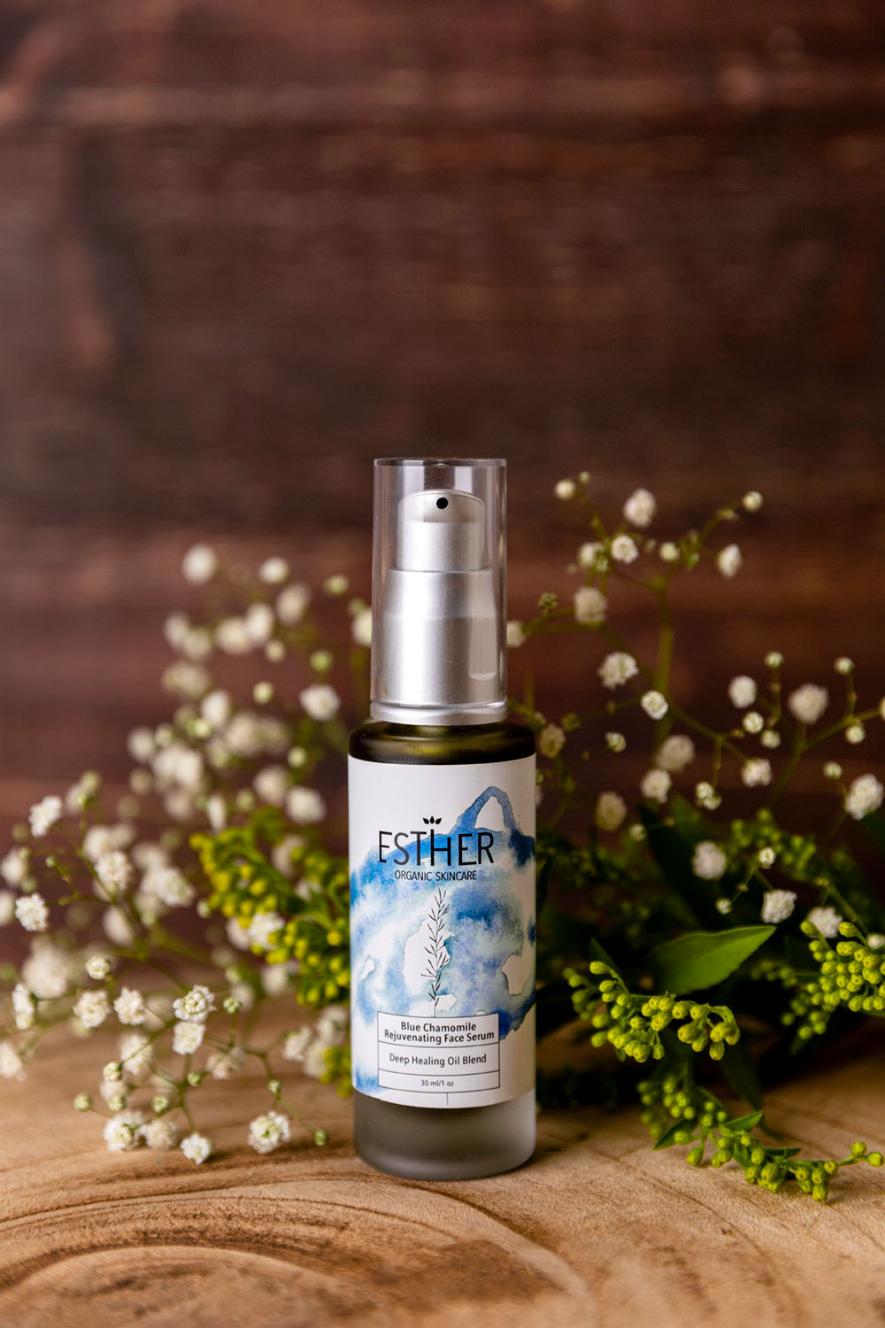 Embrace the healing essence of Israel with Esther Organic Skincare’s Blue Chamomile Rejuvenating Face Serum, a luxurious, deep-healing oil blend crafted in the heart of Jerusalem. This evening serum combines powerful ingredients known for their skin-nourishing benefits, especially the dynamic duo of calendula and rosehip oils. Calendula, known for its soothing and anti-inflammatory properties, works wonders overnight, helping to calm irritation, reduce redness, and promote skin repair while you sleep. When paired with rosehip oil, which is rich in vitamins A and C, this blend encourages skin regeneration and reduces the appearance of fine lines and scars. Together, they work in harmony to bring out a smoother, more radiant complexion by morning.