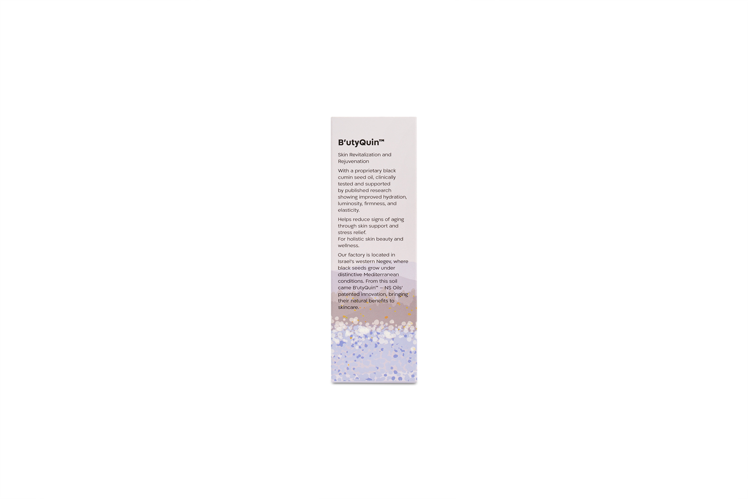 B’utyQuin was developed by an Israeli team working at the intersection of agriculture, biochemistry, and cosmetic formulation, with a specific focus on the black cumin plant grown in the western Negev. Rather than sourcing oils on the global commodity market, the company chose to cultivate and extract its primary ingredient locally, maintaining direct oversight from field to finished product. This decision anchors the brand in Israel’s agricultural south and allows precise control over quality and consistency.
