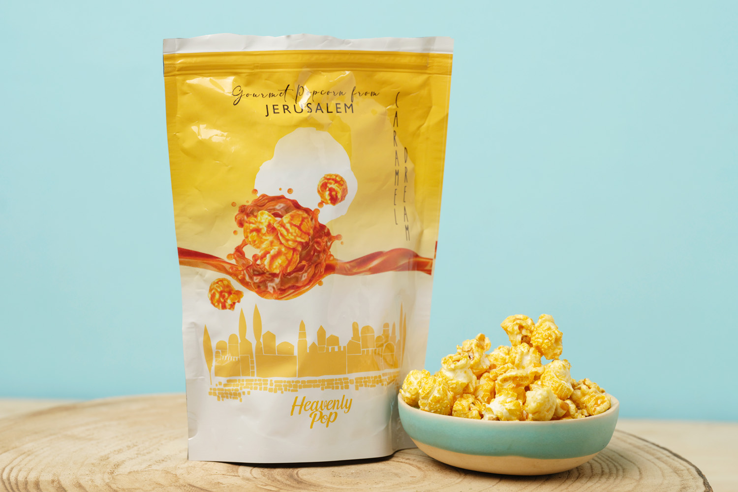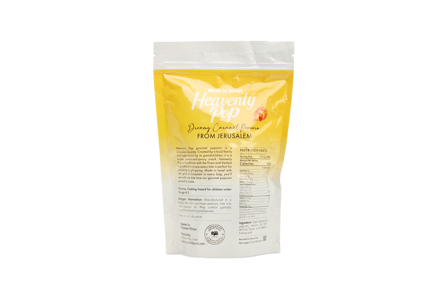 From the streets of Jerusalem, where family recipes pass quietly from one generation to the next, comes a sweet creation made with the same care that defines this land. Caramel Dream is Heavenly Pop’s signature popcorn — light, crisp kernels wrapped in smooth golden caramel with a touch of salt. Each piece carries the balance of sweetness and warmth, like sunlight over Jerusalem Stone.
