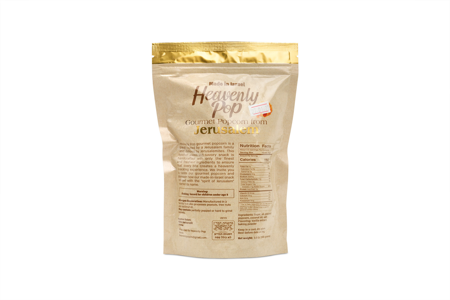 Heavenly Pop began in a small Jerusalem kitchen when Yaakov Wagshul started experimenting with caramel popcorn recipes for family and friends. What began as a homemade treat quickly developed a loyal following, and the demand for his popcorn led him to turn the recipe into a full business. Today the popcorn is still made using the same family formula, now overseen by his grandson Shmuel Horwitz, who continues producing it in the hills of Judea while keeping the character of the original recipe intact.