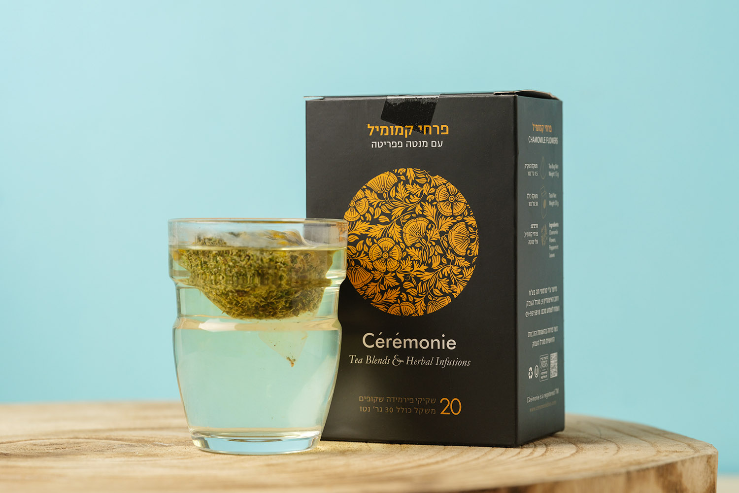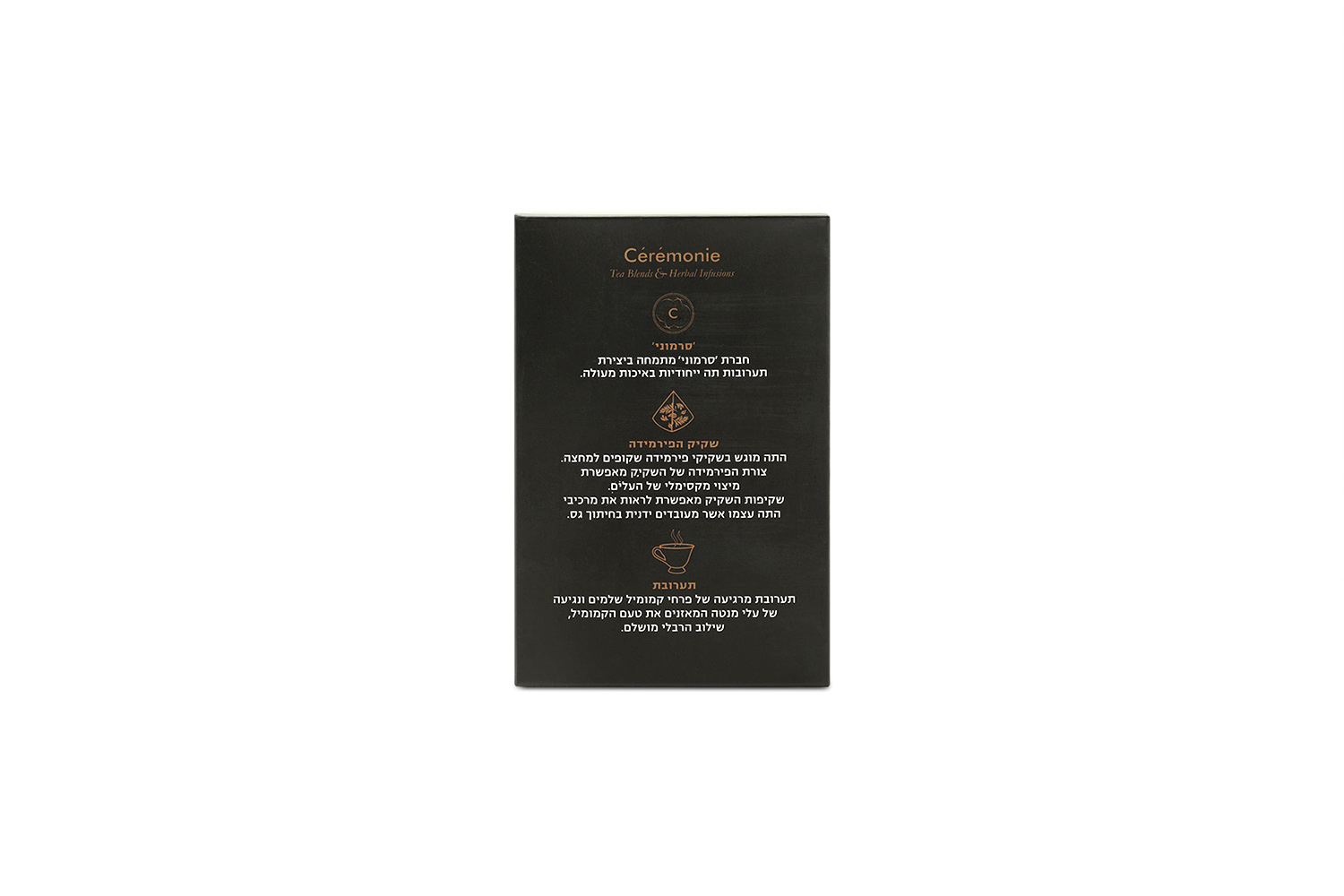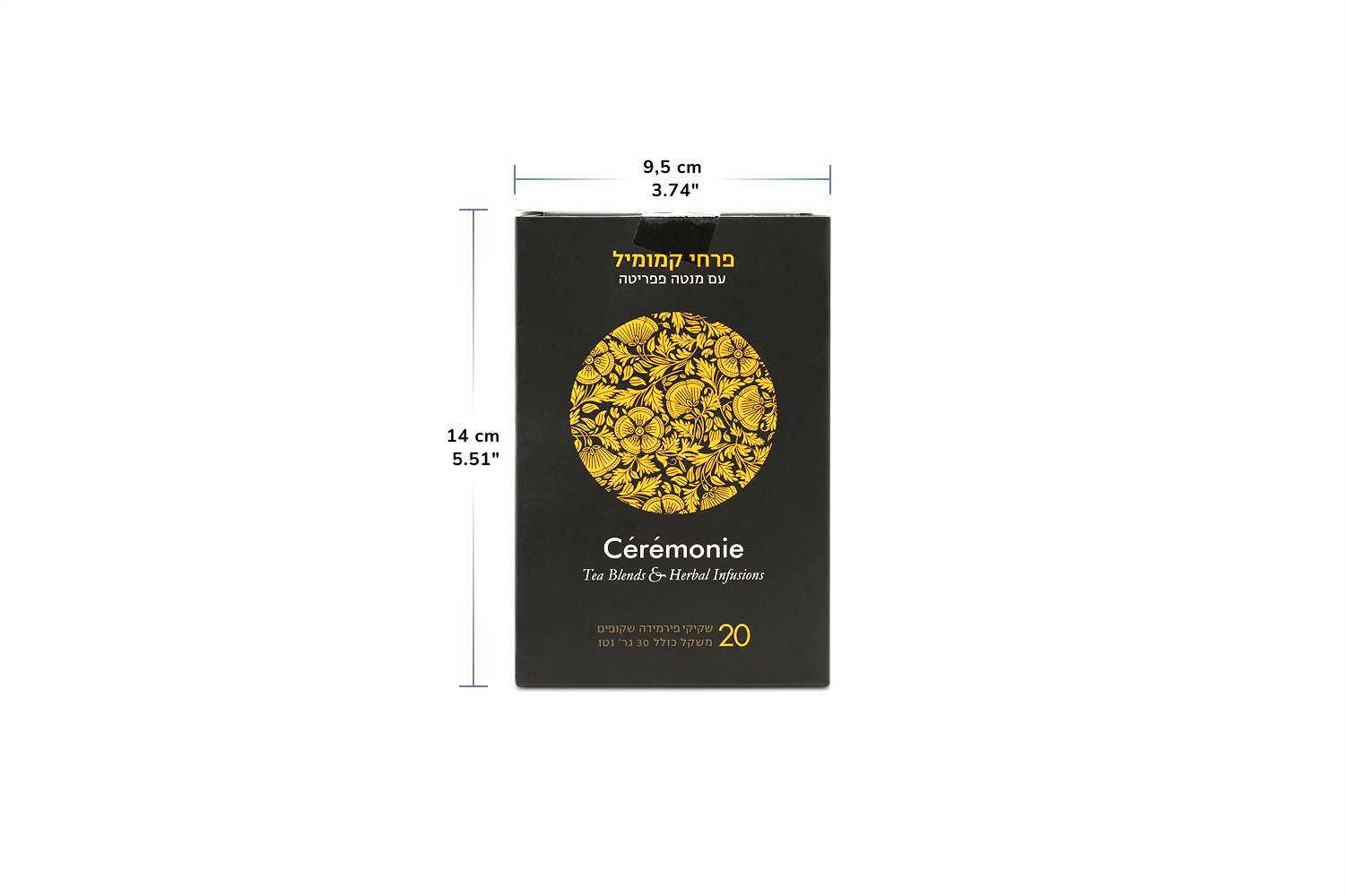 Each sachet includes thoughtful brewing guidance—steep 1–2 minutes in 200–250 ml (7–8.5 fl oz) of freshly boiled water—for a delicate, well-balanced cup. Add a touch of sugar or honey for a classic chamomile infusion that reflects the gentle, calming herbal tradition Ceremonie continues to craft with care in Israel.
