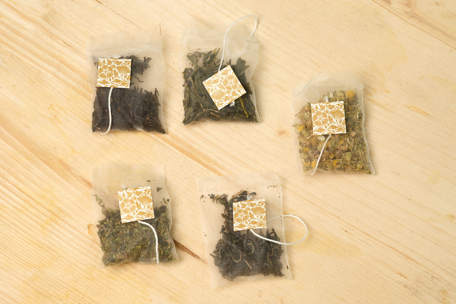 - Tea format: Whole-leaf teas and whole botanicals in mesh sachets