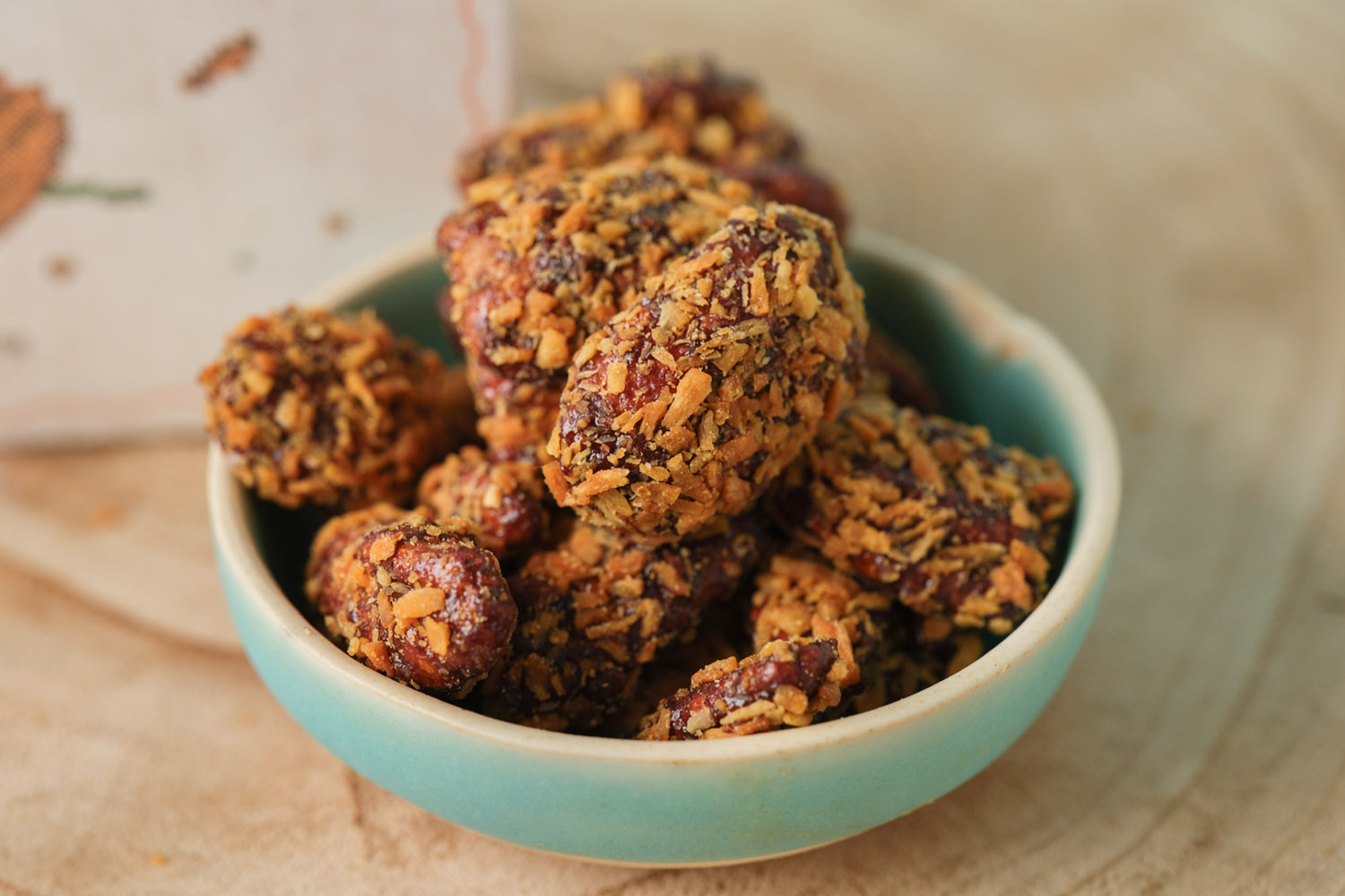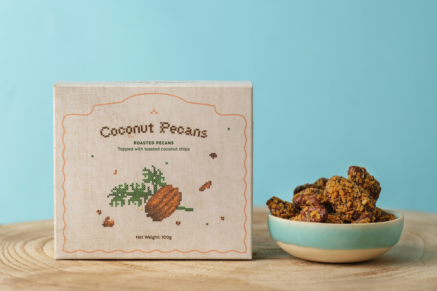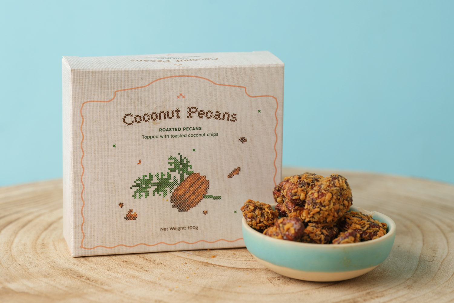 In Israel’s highlands, where rocky soil gives way to resilient trees, these Coconut Pecans are handcrafted in small batches to deliver bold crunch, golden sweetness, and just the right amount of toasted indulgence. Each pecan is roasted to perfection, then coated with delicate shavings of toasted coconut and a light touch of sugar to bring out the natural oils and warmth of the pecan.