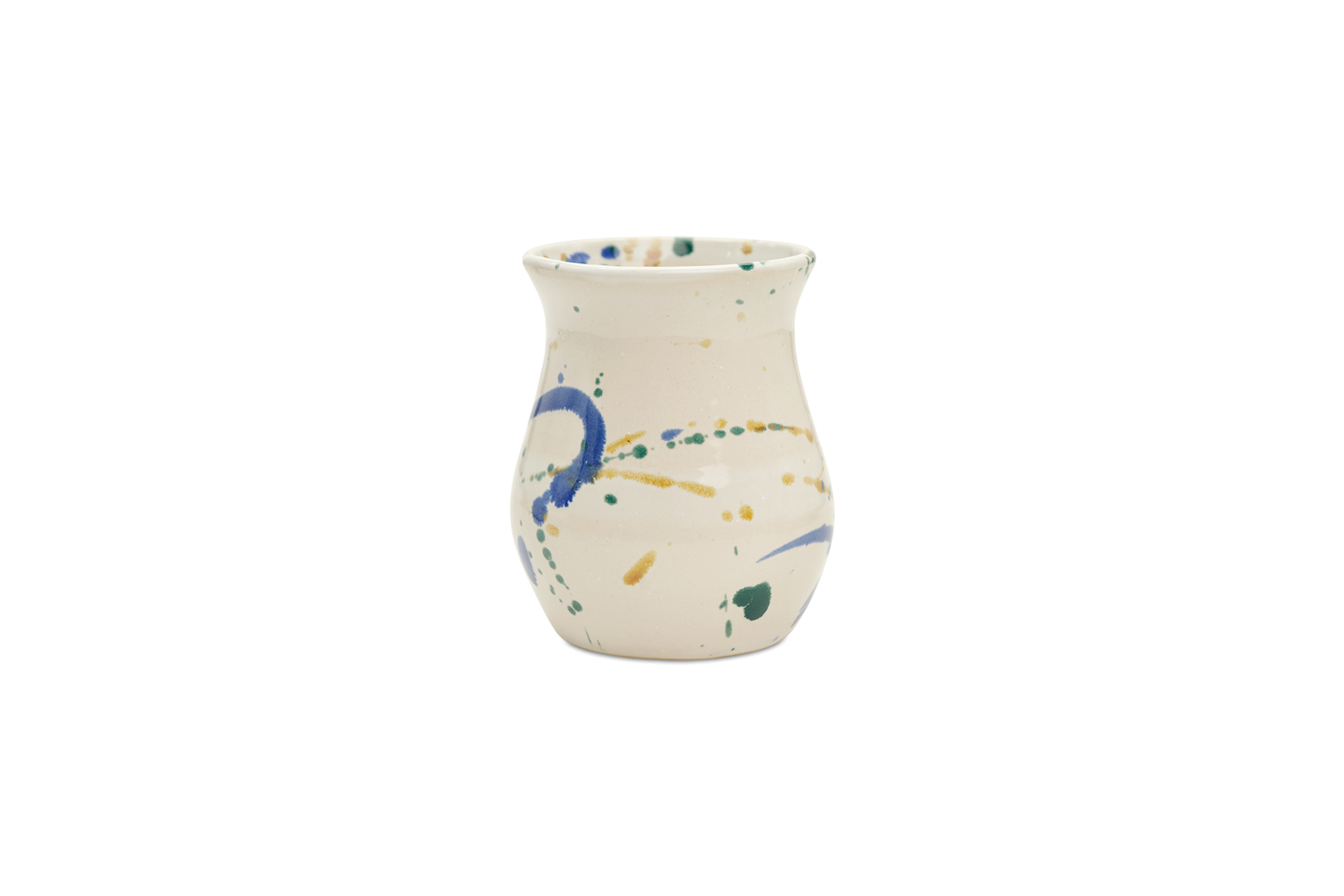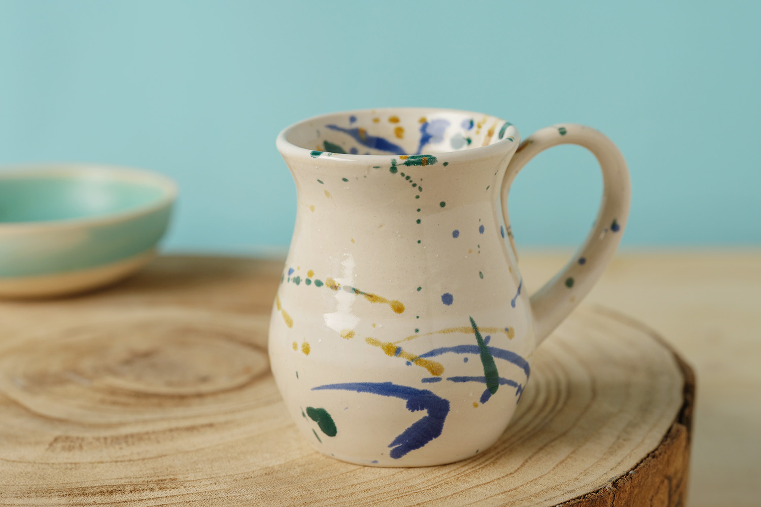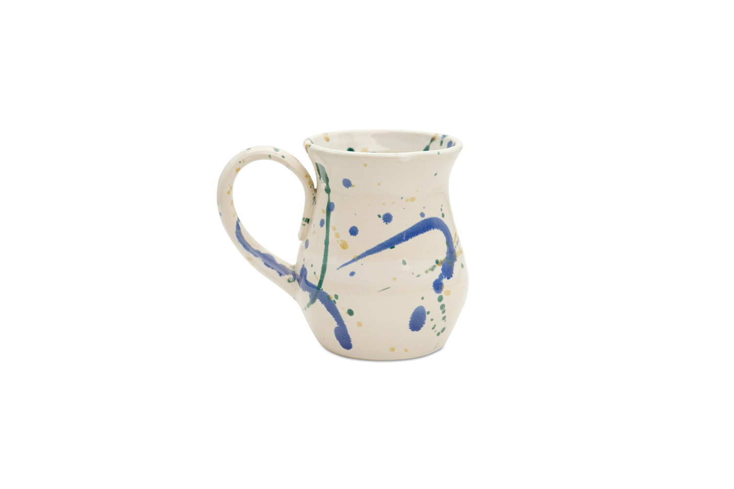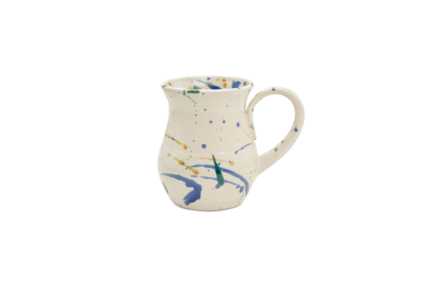 Studio Botz, an artisan pottery studio based in Israel, creates each piece by hand using methods passed down through generations of ceramic craftsmanship. This mug reflects the spontaneity and rhythm of work at the wheel, where each brushstroke of color becomes part of the clay’s surface rather than decoration laid on top.