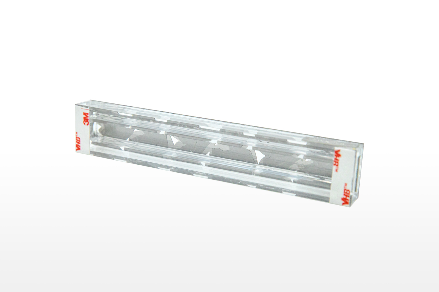 The acrylic mezuzah case is decorated with the Hebrew letter ‘shin,’ tucked inside one of the upper hearts. The letter ‘shin’ corresponds to one of the names of the almighty. It is a good reminder as you enter the rooms of your home that you are in God’s care.
