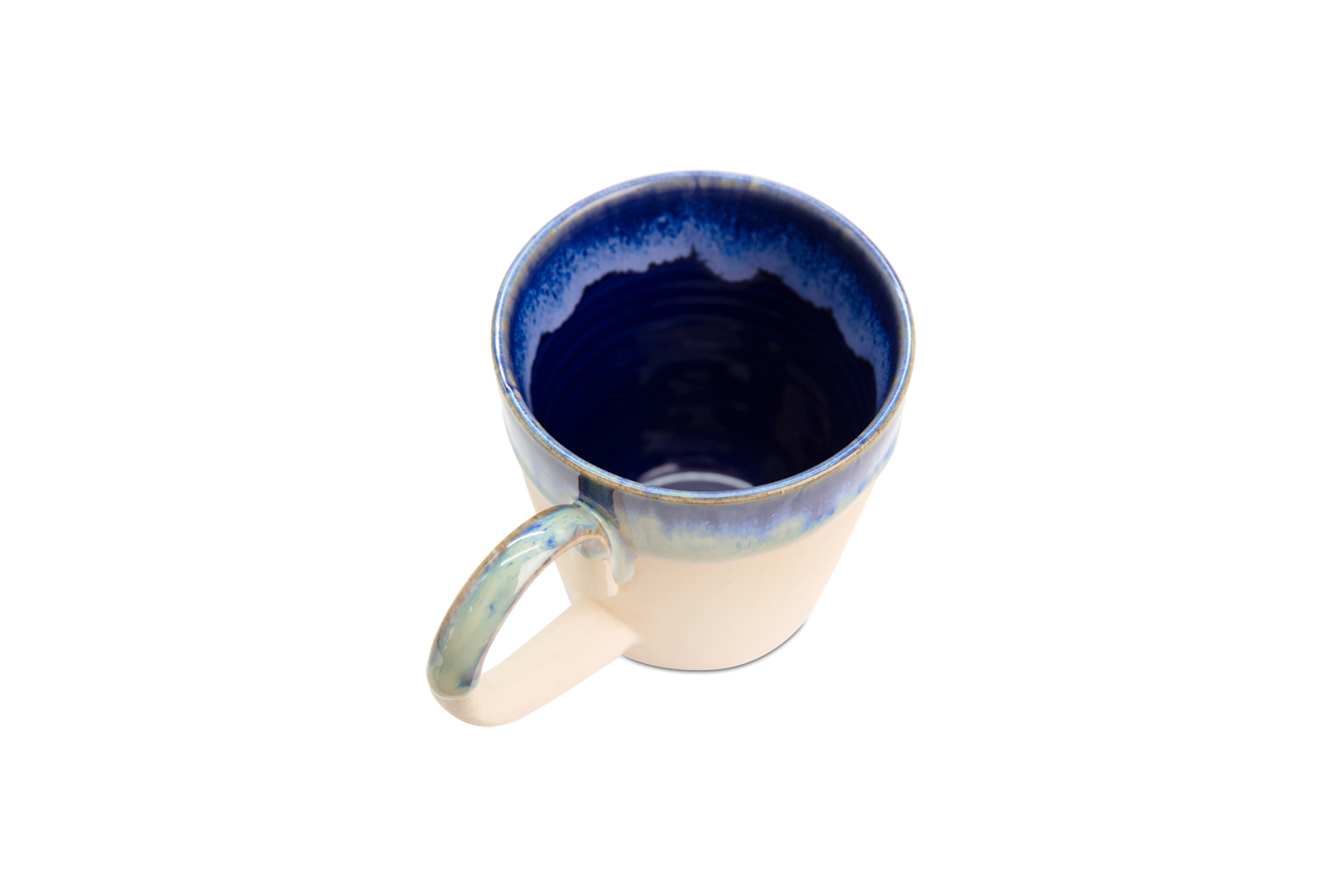 Hand-thrown on the wheel using white clay, this mug is designed with comfort in mind. The ceramic handle is shaped and sized to fit perfectly in the hand, making it suitable for both men and women. The stunning shiny blue glaze adds an earthy charm that complements any decor, making each sip a pleasurable experience.