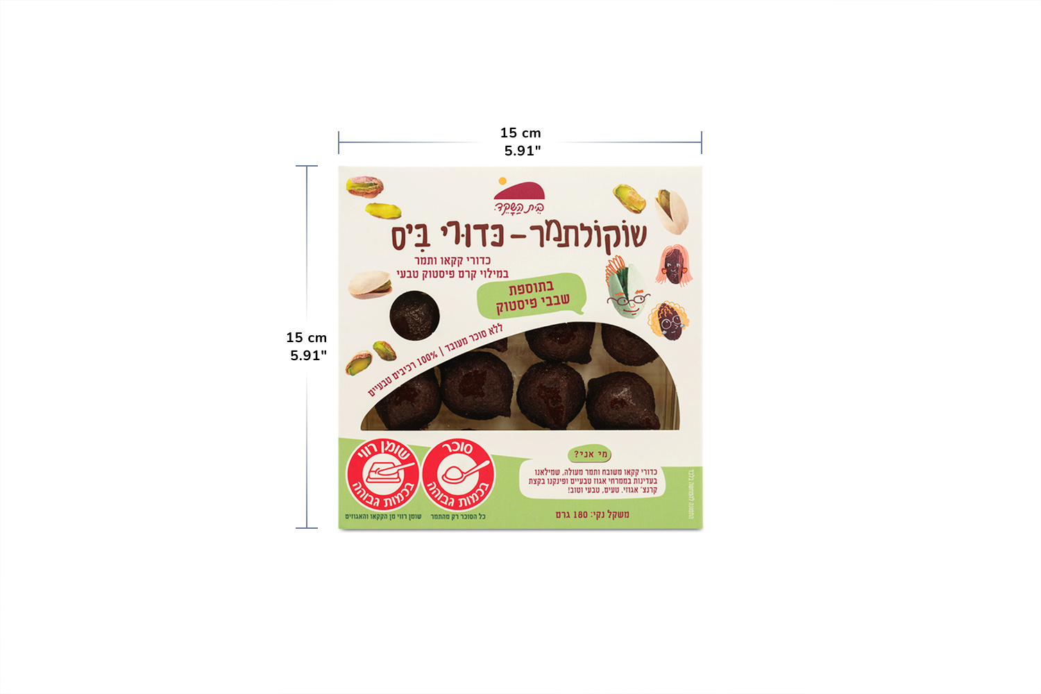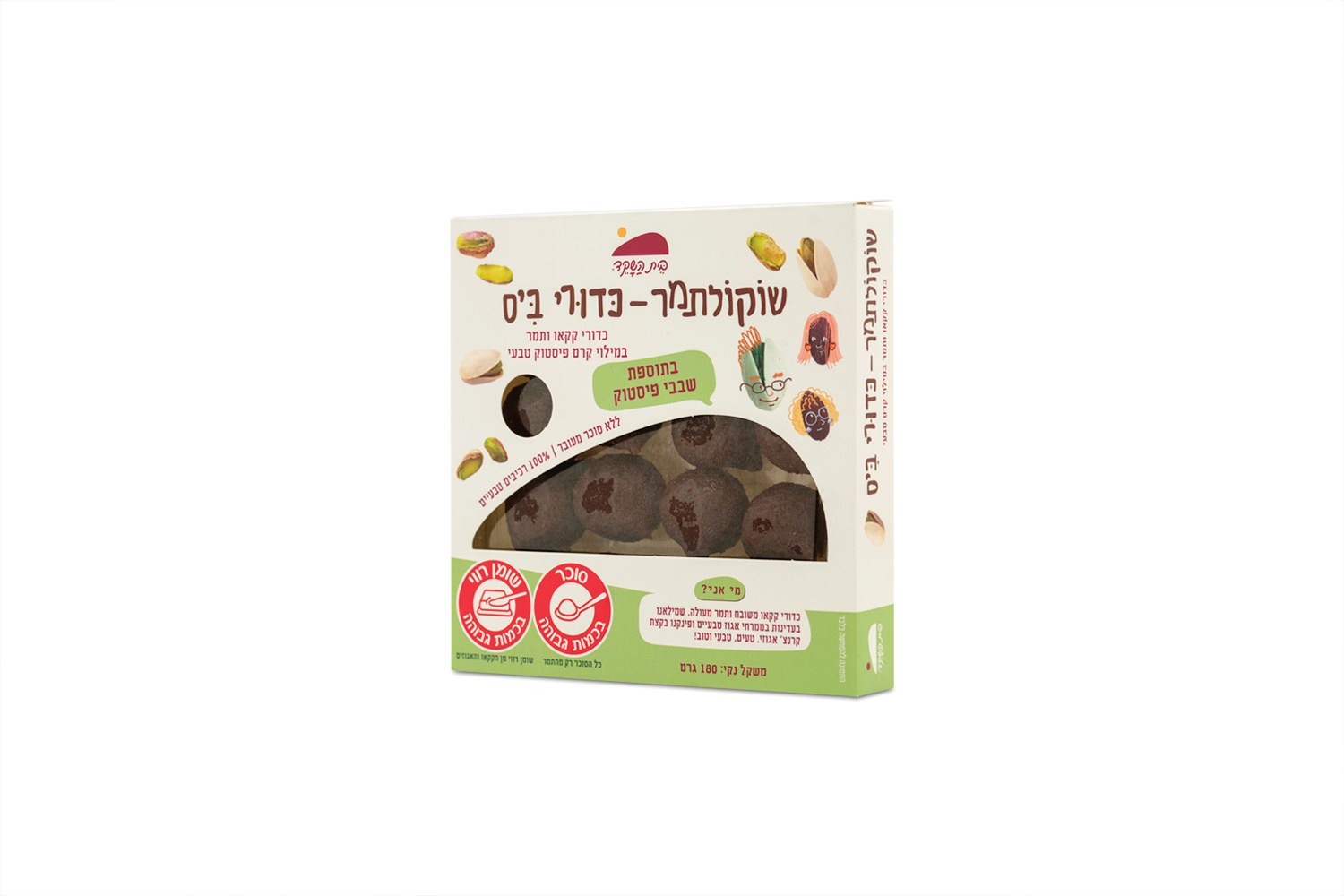 Beit HaShaked keeps their ingredients simple and their process grounded in tradition: no refined sugar, no artificial additives, and no shortcuts. Everything rests on the natural sweetness of dates and the clean, full flavor of pistachios. The result is a snack that feels homemade — soft, dense, lightly chewy, and satisfying without being overly sweet. In each box is the work of an artisanal Israeli bakery devoted to honest foods with minimal ingredients without sacrificing flavor or texture.