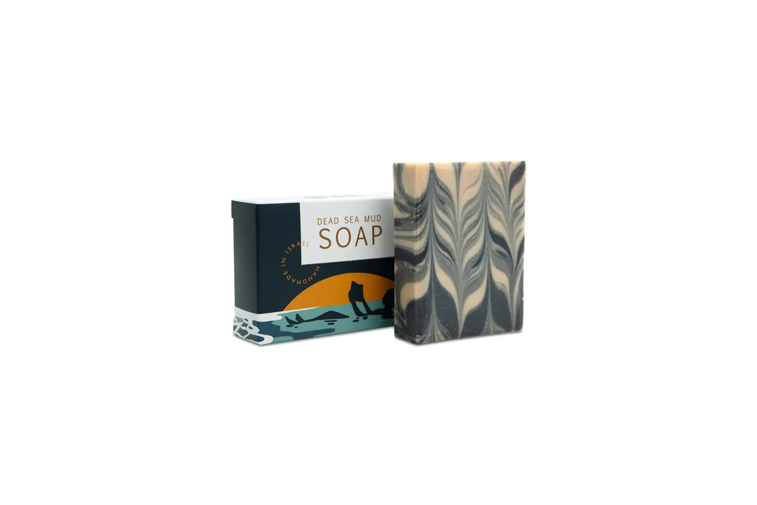 Avital’s handmade Dead Sea Mud soap has an olive oil base enriched with shea butter, cocoa butter, coconut oil, Dead Sea Mud, activated charcoal, and essential geranium, lavender, and patchouli oils. These natural and organic ingredients offer a luxurious and nourishing skincare experience.