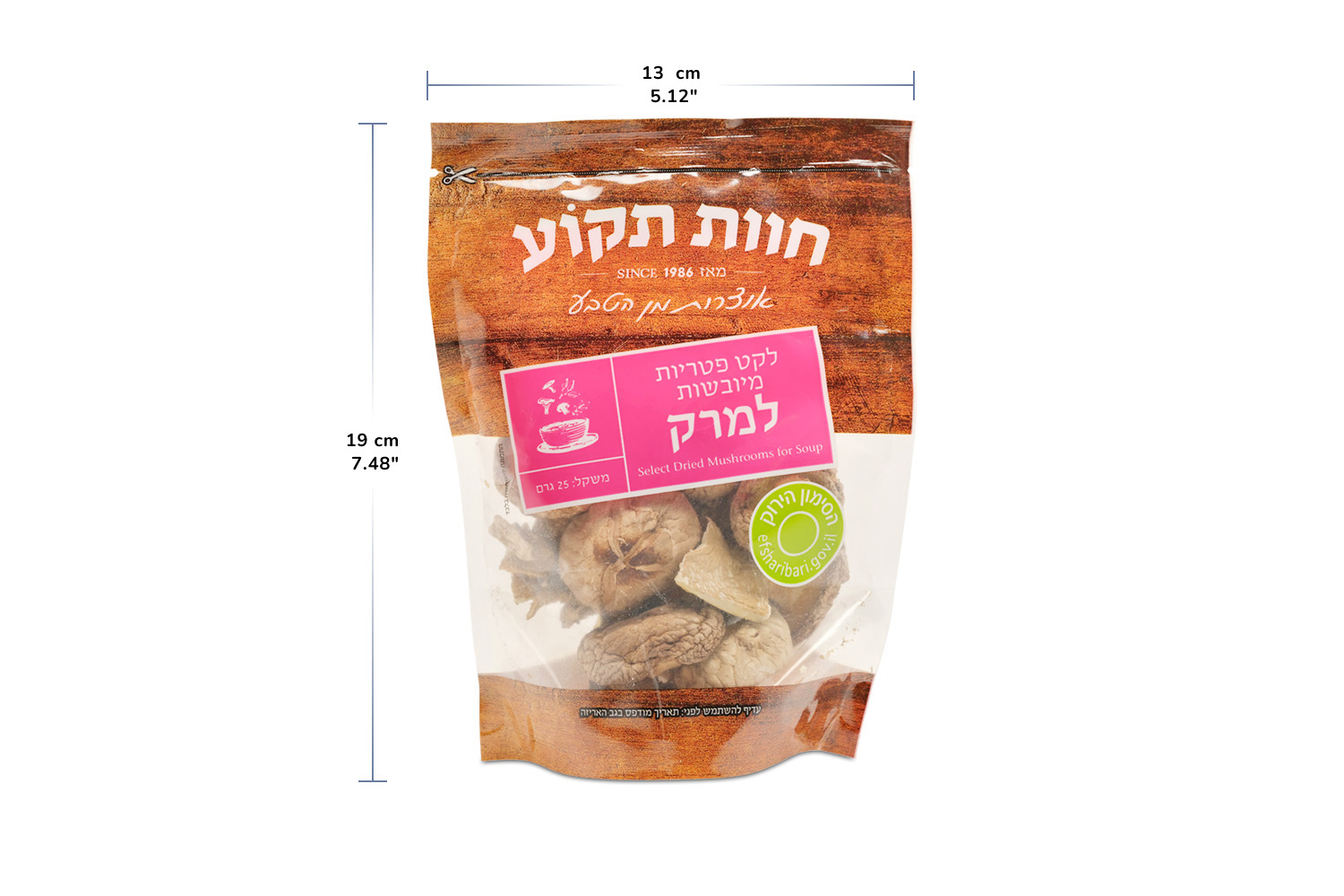 Tekoa Farms’ Select Dried Mushrooms for Soup brings a deep, woodsy flavor straight from the hills of the Judean region to your kitchen. This blend includes whole dried mushrooms – beautifully shaped, firm, and aromatic – ideal for enriching soups, stews, sauces, risottos, or broths. Once soaked, the mushrooms release a savory and earthy richness that immediately elevates the simplest of dishes.