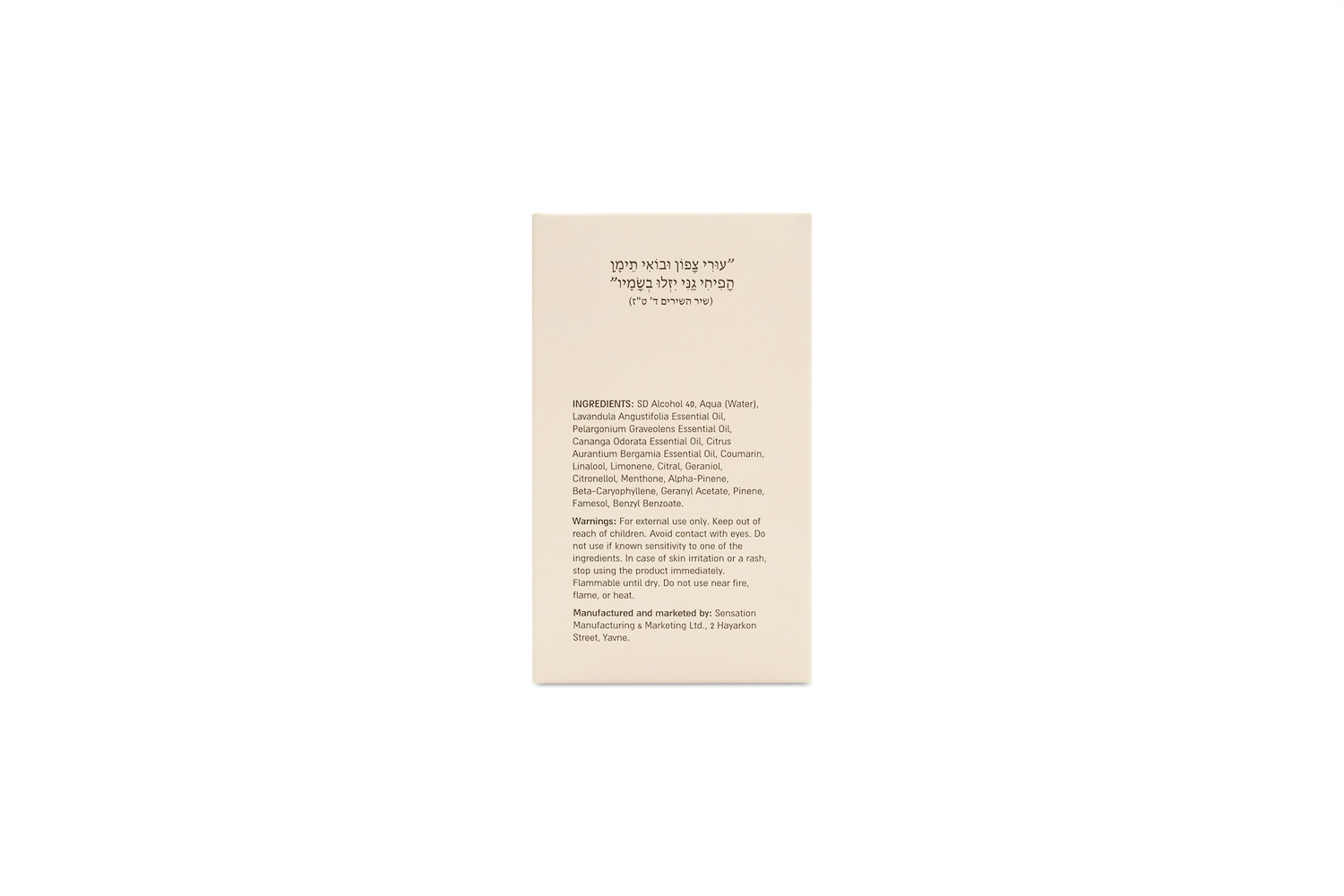 The result is a scent that feels like stepping into a home in the Judean Hills of Israel with the windows open – where garden plants, citrus, and clean air move freely between indoors and outdoors. Eden Mist can be sprayed in a room, on linens, on clothing, or lightly on the body, and offers a daily sensory connection to Israel through its fragrances.