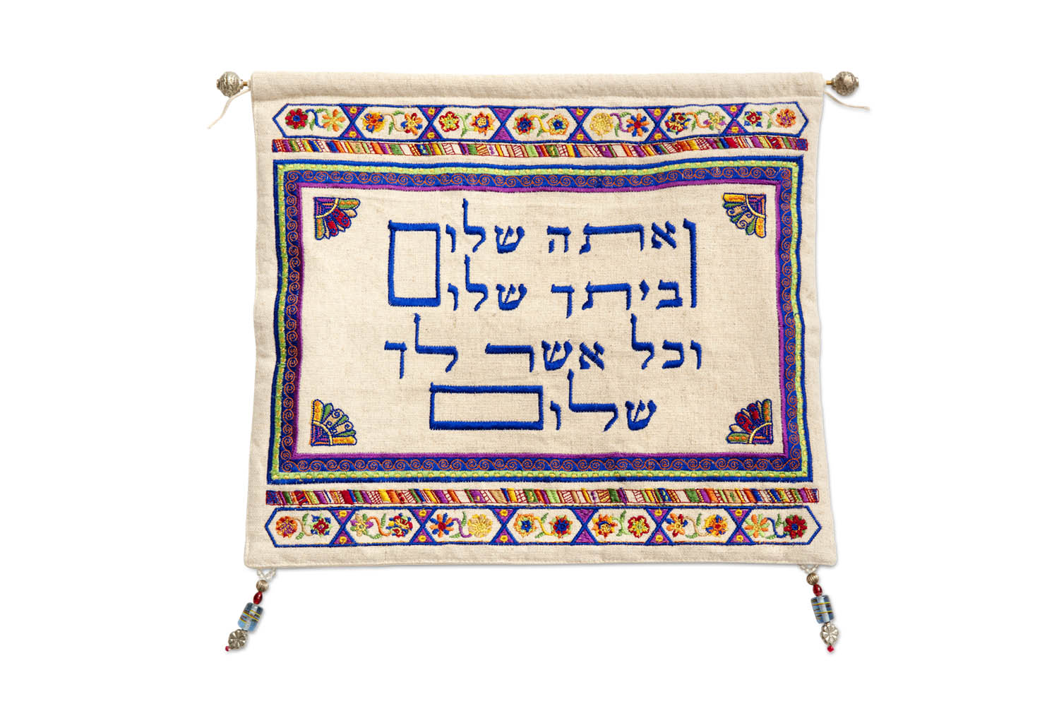 Embroidered “Shalom” Wall Hanging by Emanuel Judaica