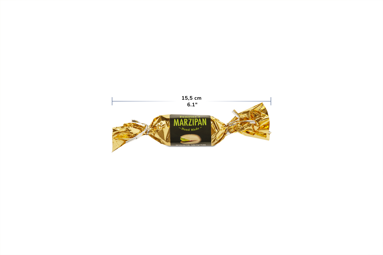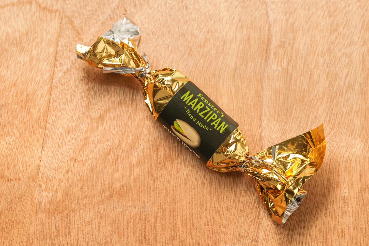 Each piece is wrapped tightly in gold foil, protecting the marzipan from air and heat while preserving its moisture. The wrapping mirrors how marzipan is traditionally stored and gifted in Israel: individually portioned and easy to share.