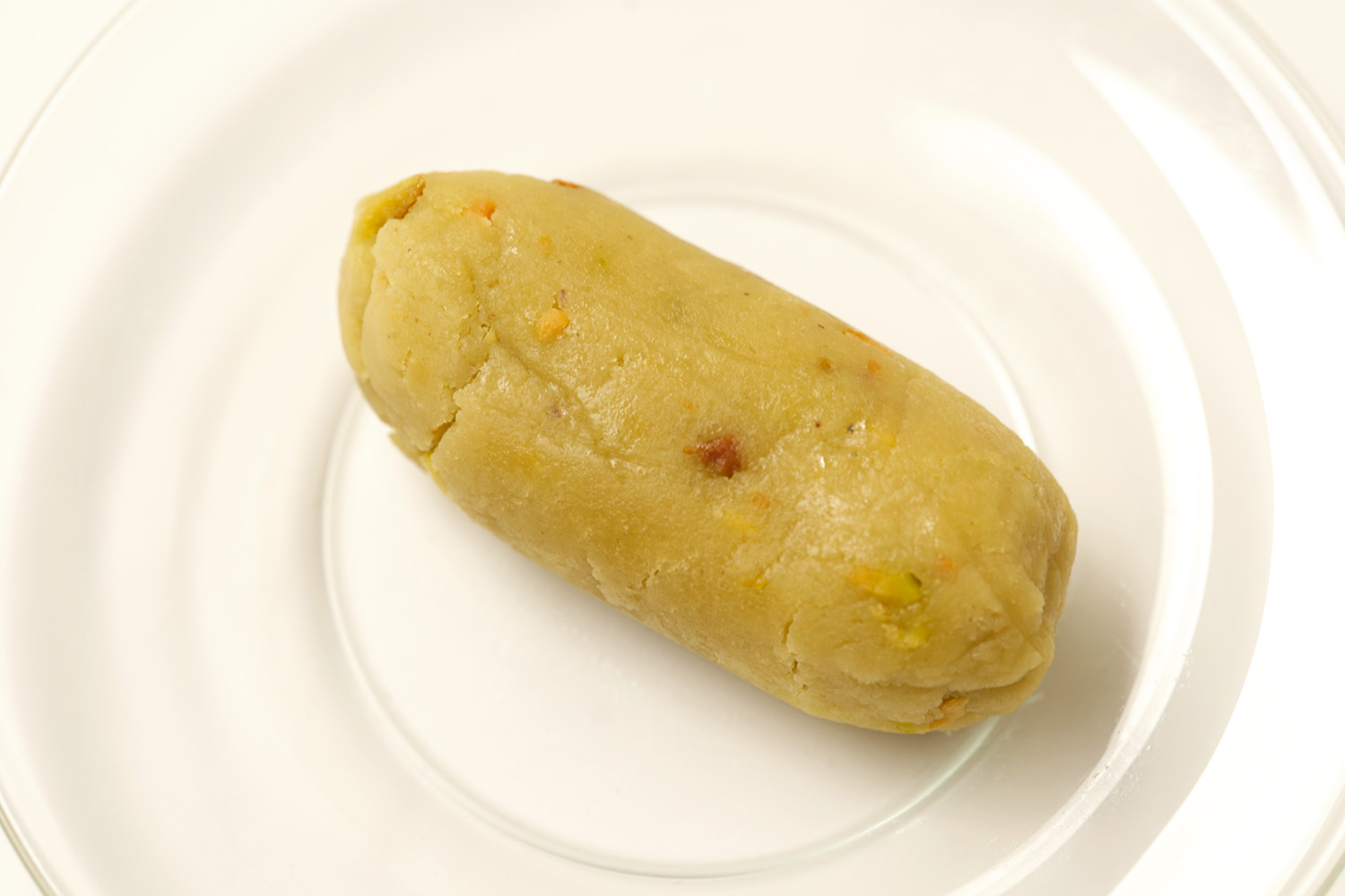 The marzipan is softly structured, holding its shape while yielding easily when sliced. Almond flavor leads immediately, followed by the buttery richness of pistachio that appears in small, uneven pockets throughout the roll. The sweetness is measured and allows the natural character of the nuts to stay at the forefront. This is the kind of confection often served in thin slices, paired with coffee or tea.