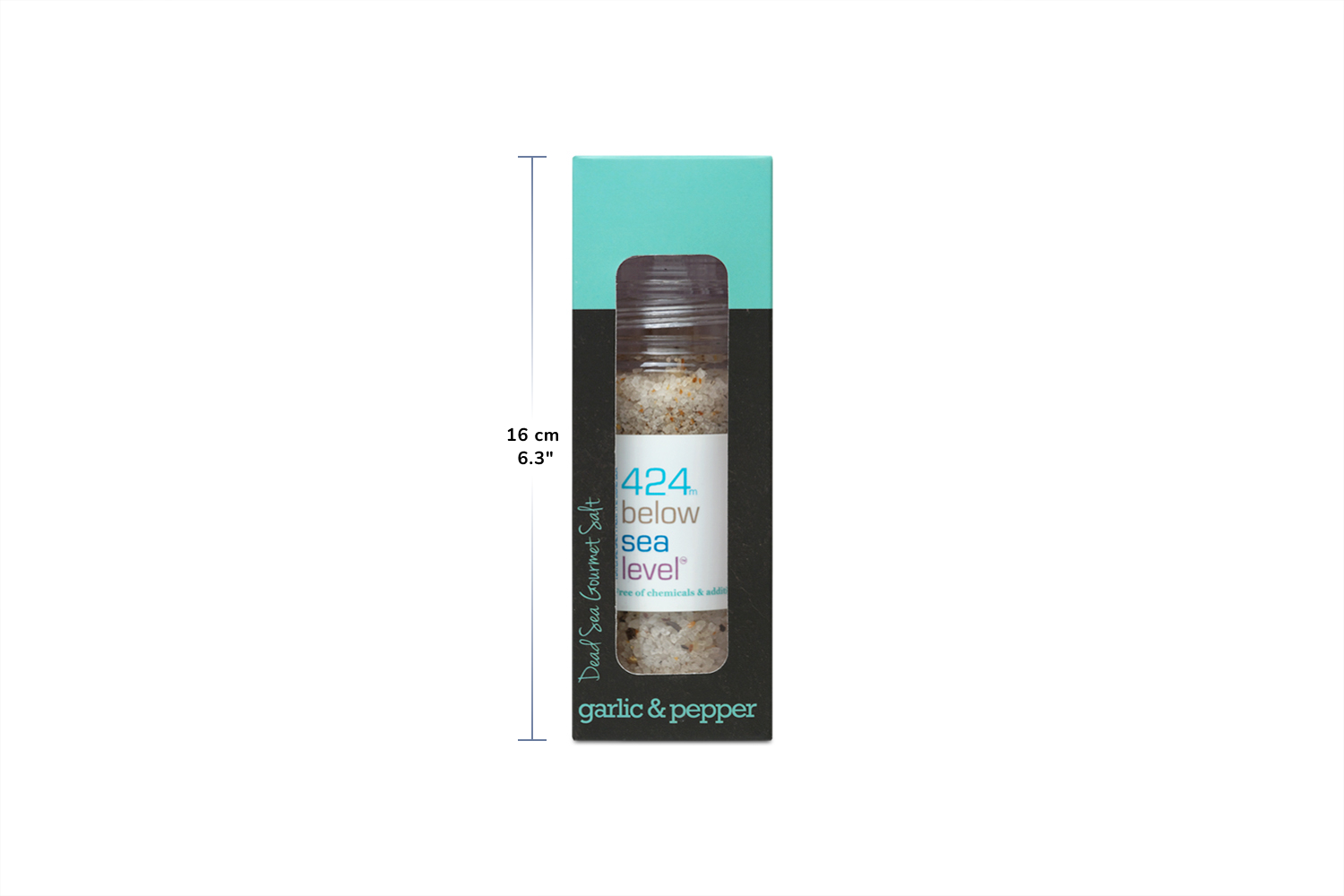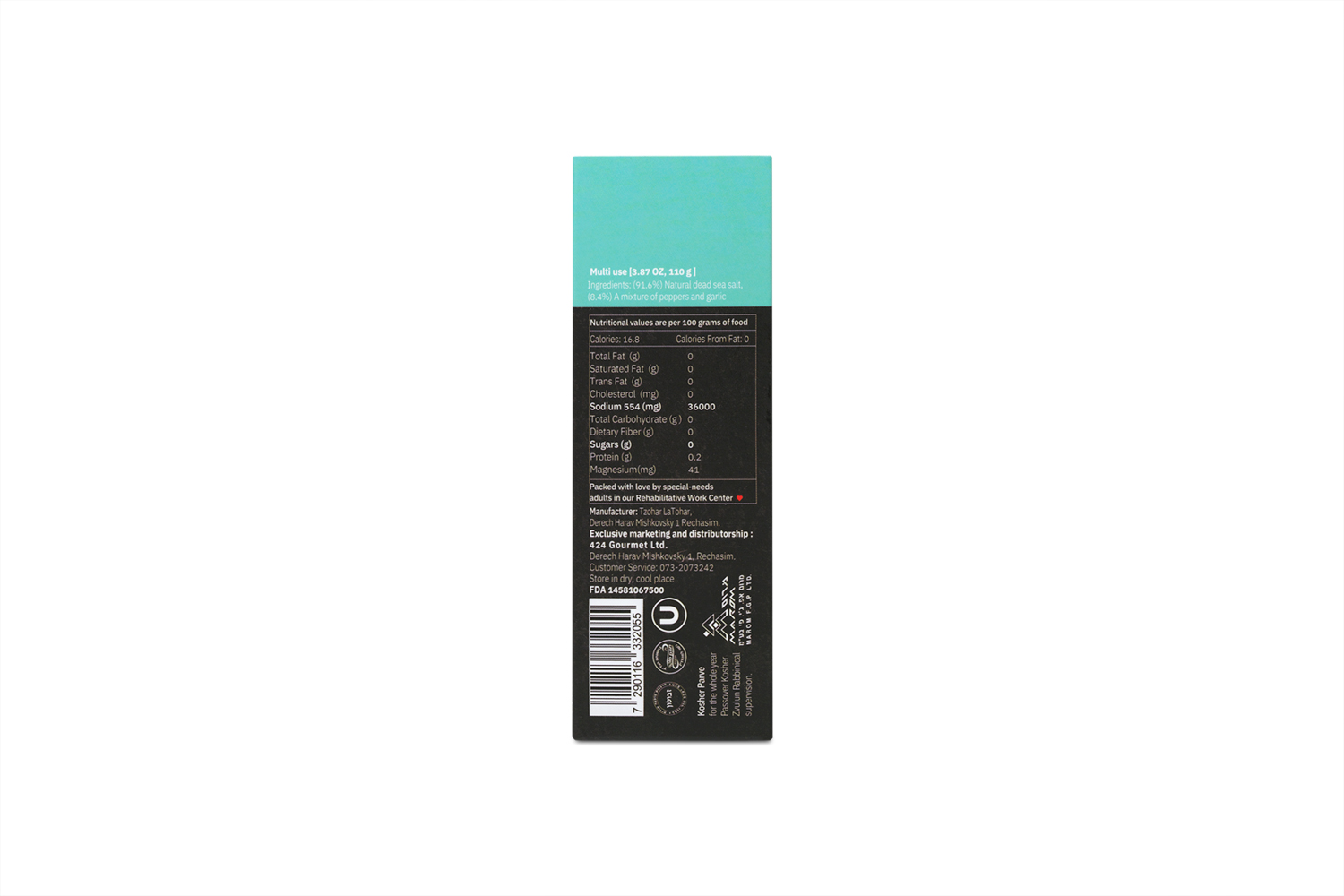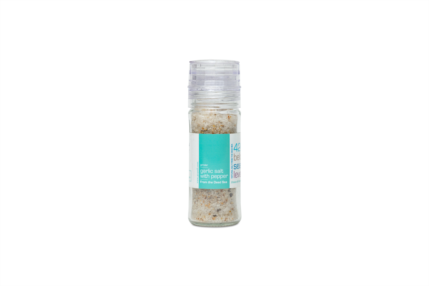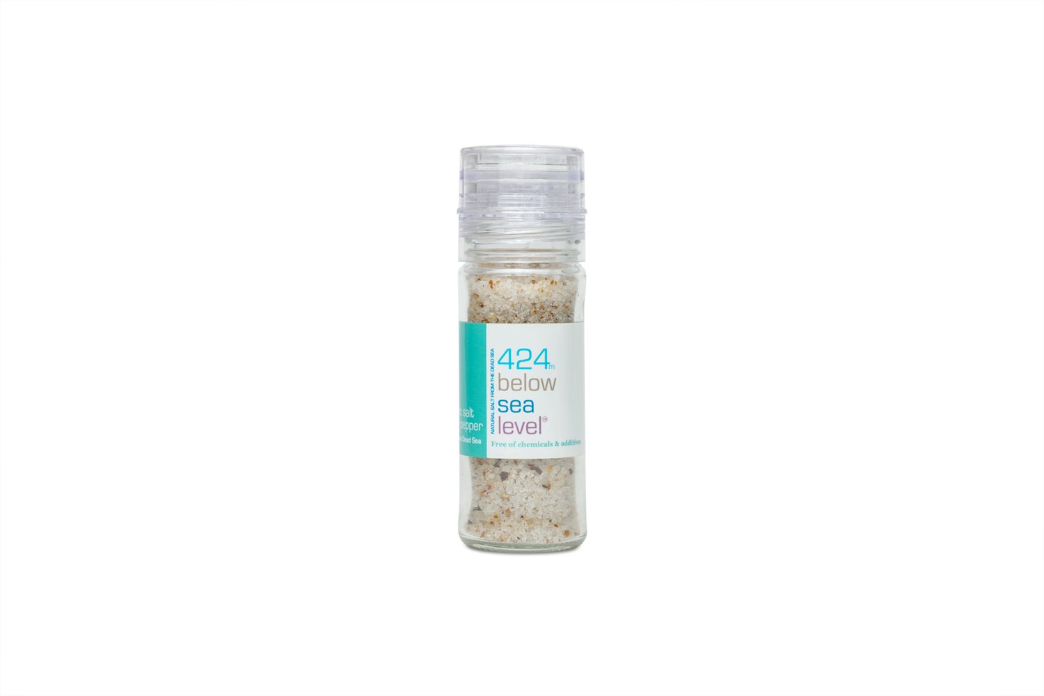 Israel’s Dead Sea is known for its naturally mineral-rich salt, and 424 salt has unlocked the flavor and health benefits of Dead Sea salt for your kitchen! Adding garlic and black pepper enhances the naturally mild salt flavor, just as your cooking will be!