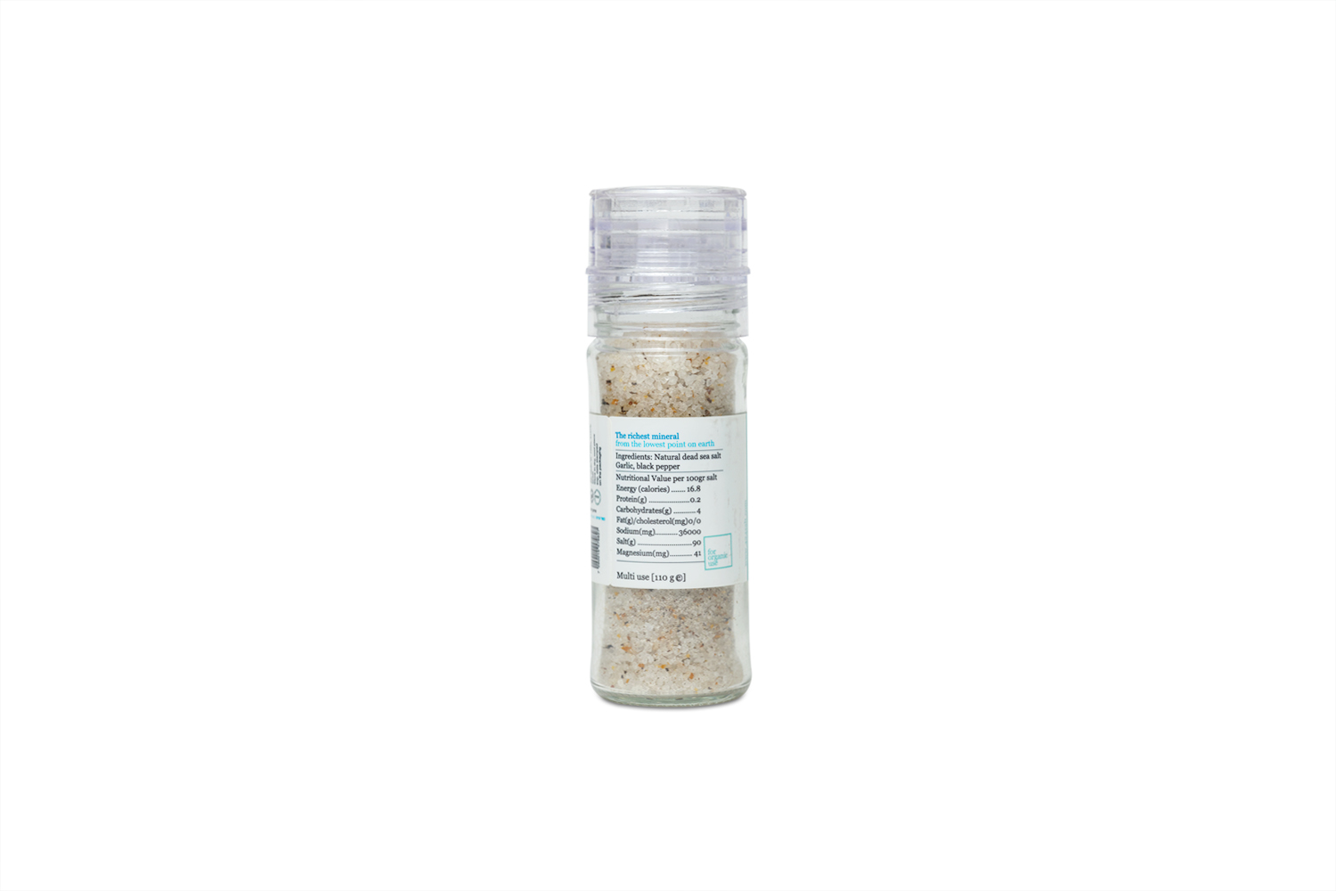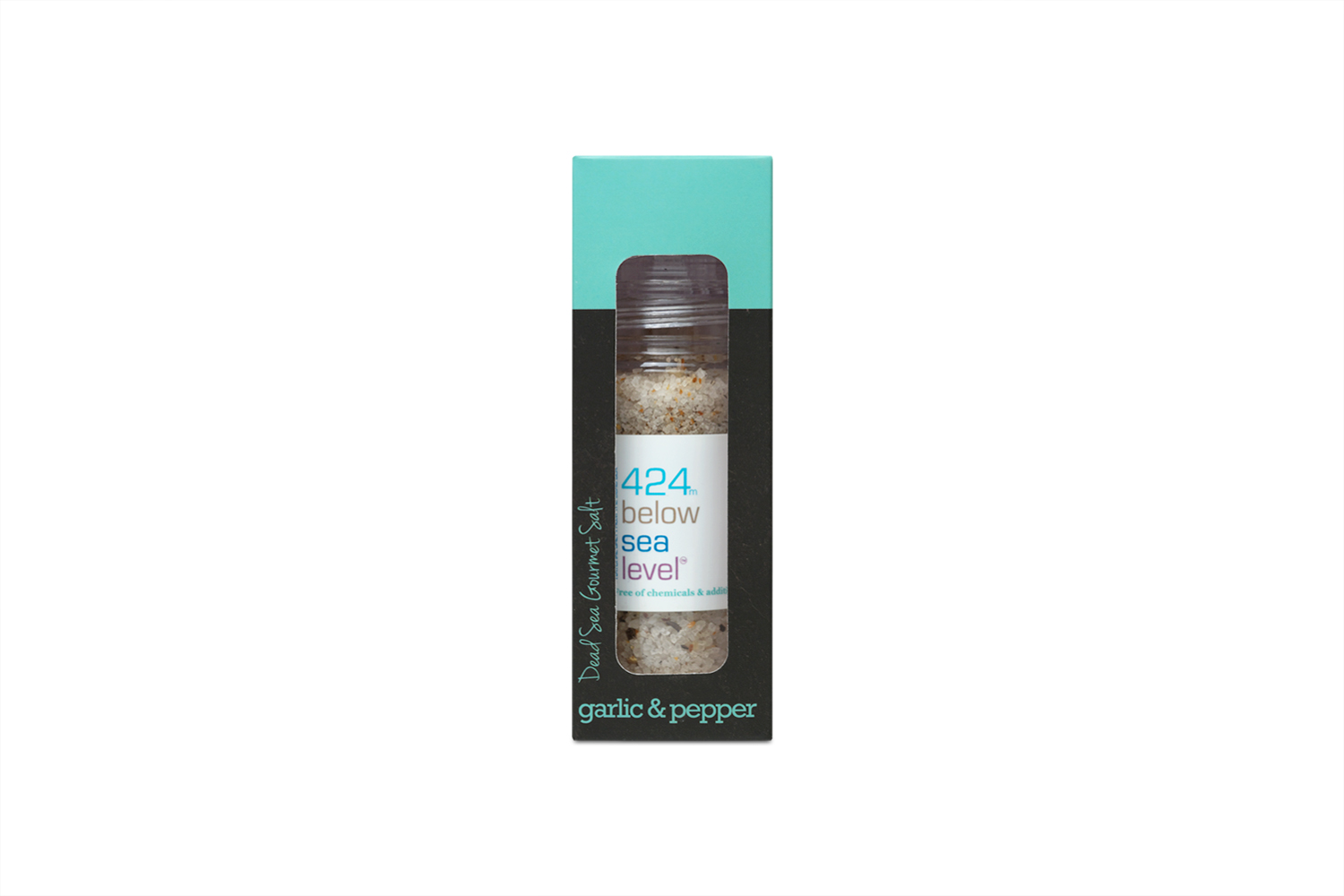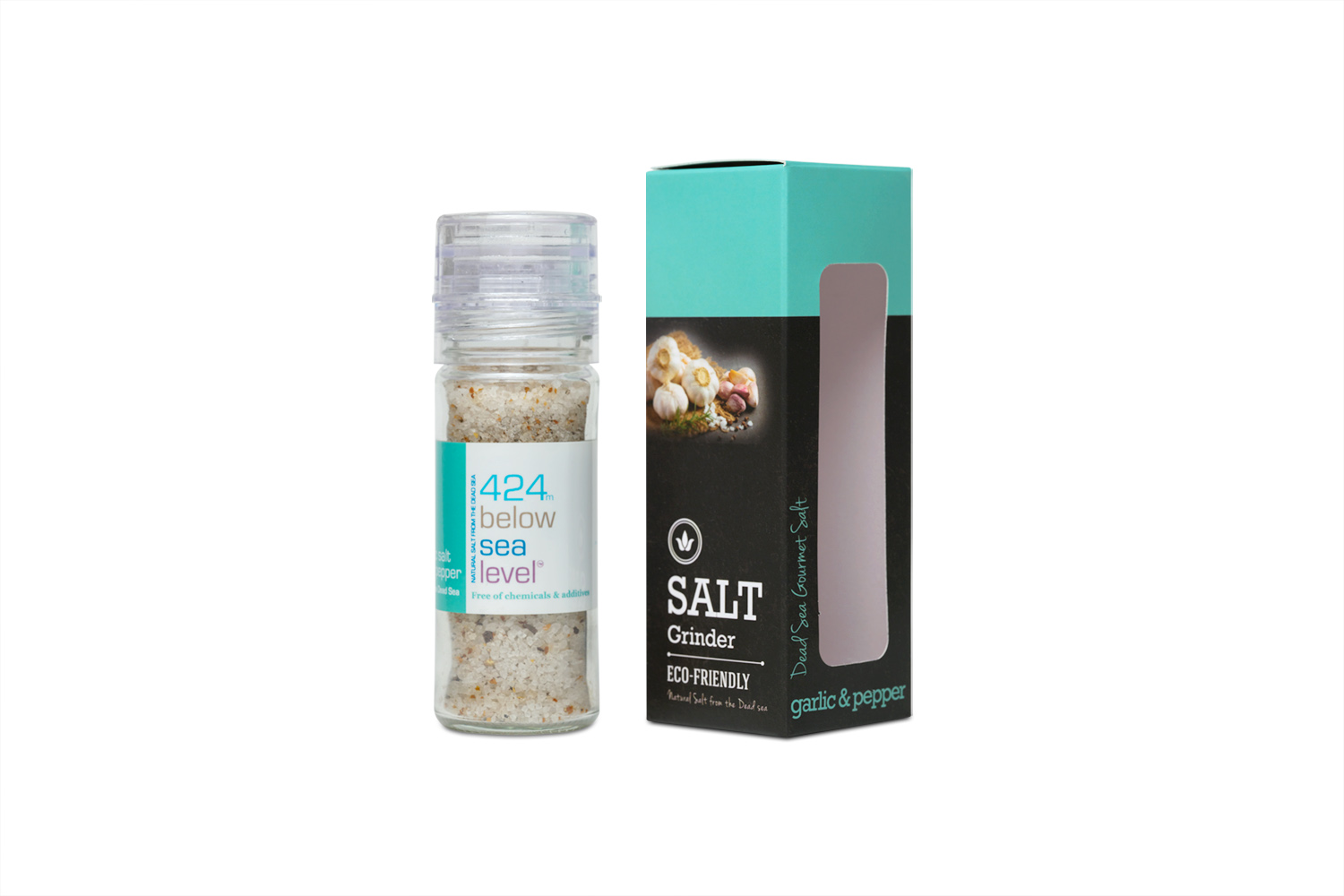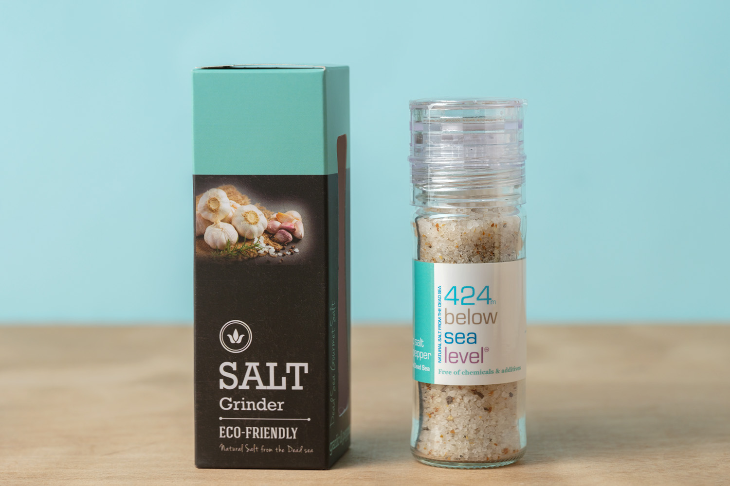 Israel’s Dead Sea is known for its naturally mineral-rich salt, and 424 salt has unlocked the flavor and health benefits of Dead Sea salt for your kitchen! Adding garlic and black pepper enhances the naturally mild salt flavor, just as your cooking will be!