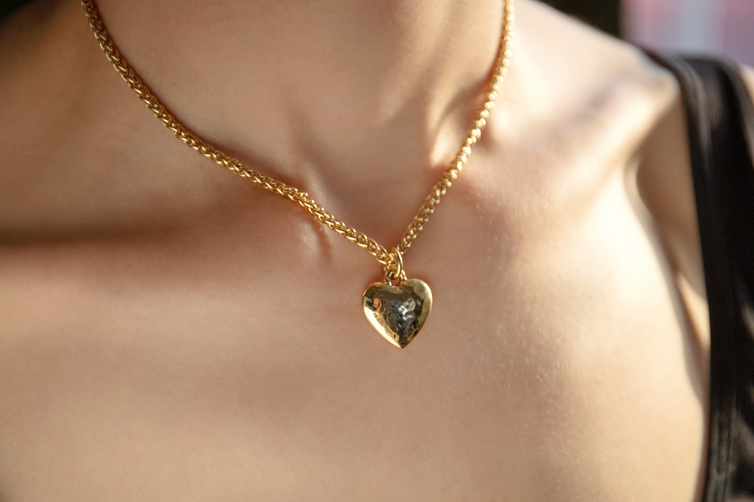 Gold-Plated Necklace with a Textured Heart Pendant