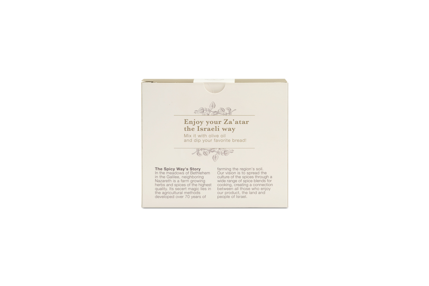 Made by The Spicy Way, a family-run herb farm located in the rolling meadows between Bethlehem of Galilee and Nazareth, this za’atar reflects over 70 years of agricultural expertise. Grown, harvested, and blended on-site, each ingredient is hand selected for its exceptional quality and flavor.