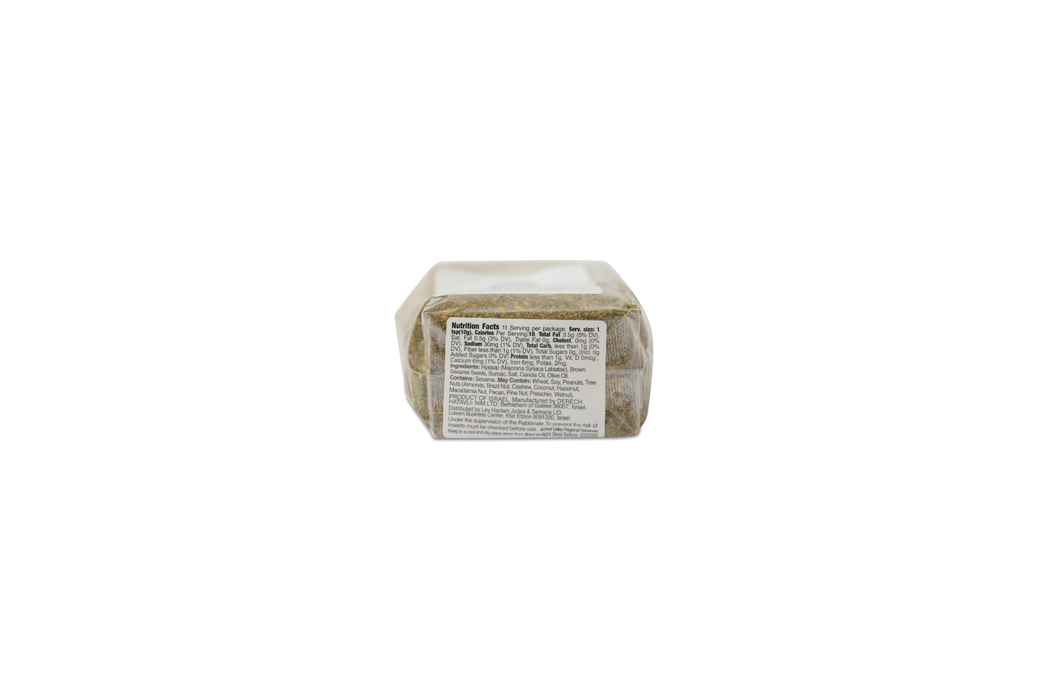 The recipe combines hyssop (Majorana Syriaca Labiatae), brown sesame seeds, sumac, salt, canola oil, and olive oil – resulting in a balanced mix of nutty, citrusy, and herbal notes with a satisfying depth. This za’atar is straight from the Galilee, grounded in tradition, and ready to elevate everything from hummus to roast chicken. Sprinkle it generously – this spice from the Holy Land is history that you can taste.