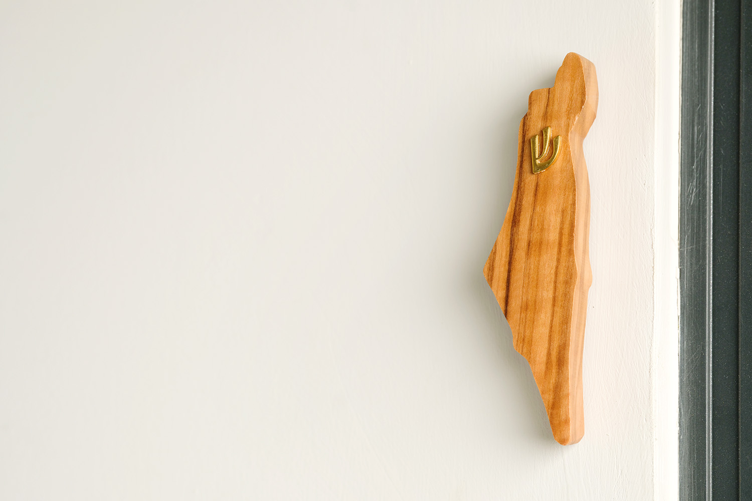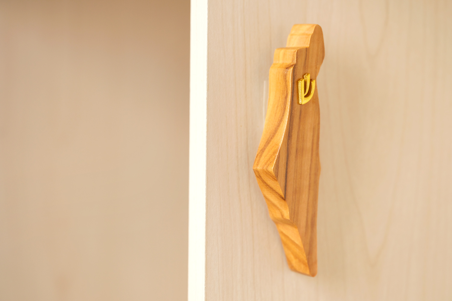 In his workshop, Joseph carves each mezuzah by hand, shaping the wood into the outline of the Land of Israel and allowing the natural grain to guide the final form. The organic patterns running through the olive wood are never repeated, giving every piece its own identity and presence. His designs blend classic symbolism with a clean, modern aesthetic, creating a mezuzah that feels rooted in tradition yet suited to contemporary Jewish homes. The smooth finish invites touch, while the carved silhouette reflects the beauty of the land that inspires his work.