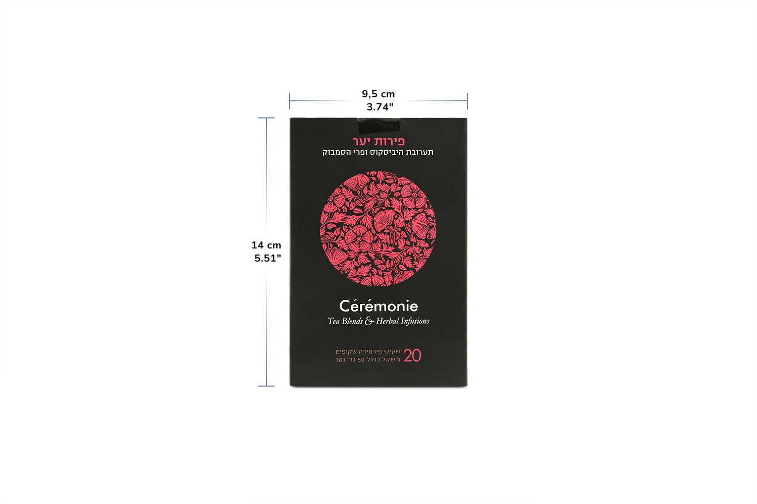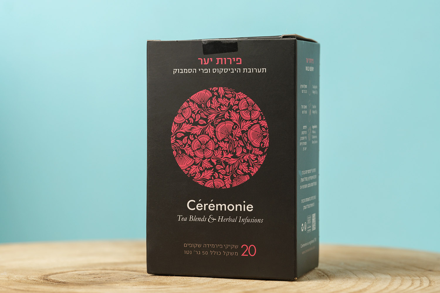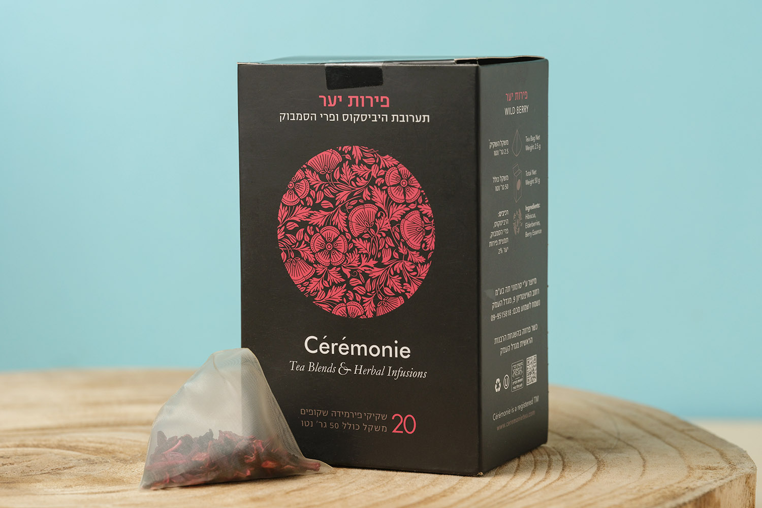 Produced in Migdal HaEmek, Israel, Ceremonie Tea is known for elevating everyday tea into a beautifully crafted experience. Their blends use premium whole botanicals, combined in small batches for purity and freshness, and presented in signature pyramid-shaped mesh sachets that allow the ingredients to fully open and infuse. Every box reflects the brand’s dedication to boutique-quality tea, artful presentation, and an enjoyable brew in every cup.