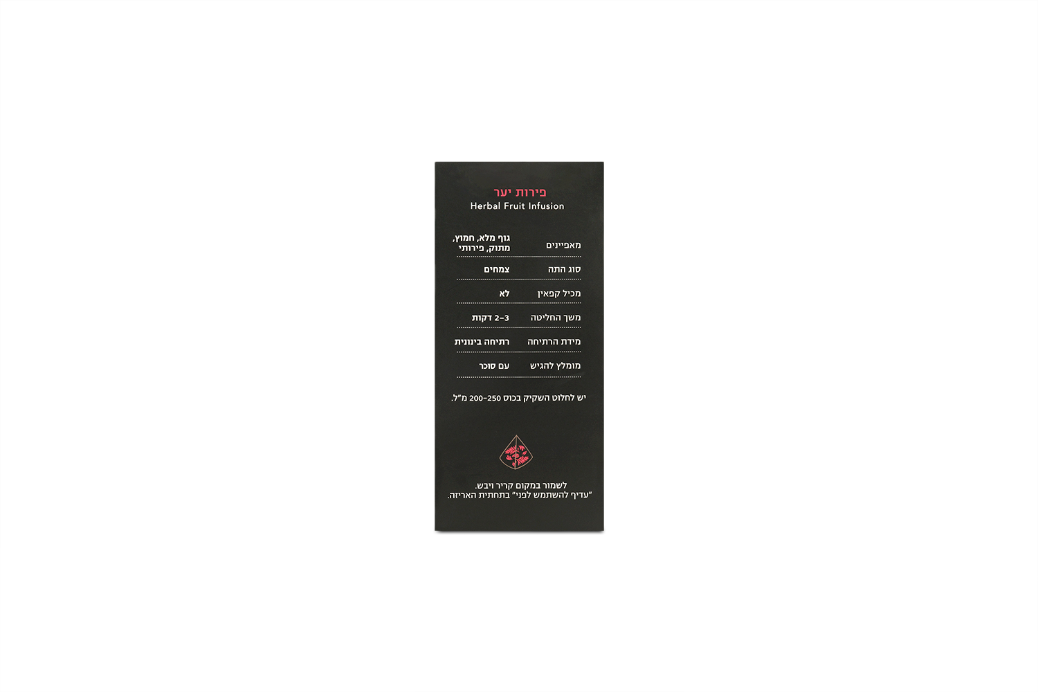 Each sachet includes thoughtful brewing guidance—simply steep 2–3 minutes in 200–250 ml (7–8.5 fl oz) of freshly boiled water to achieve the ideal balance of brightness and berry richness. Enjoy unsweetened for a tart, refreshing profile, or add sugar or honey to highlight the fruit’s natural sweetness and savor a fruit-forward infusion crafted with care in Israel.