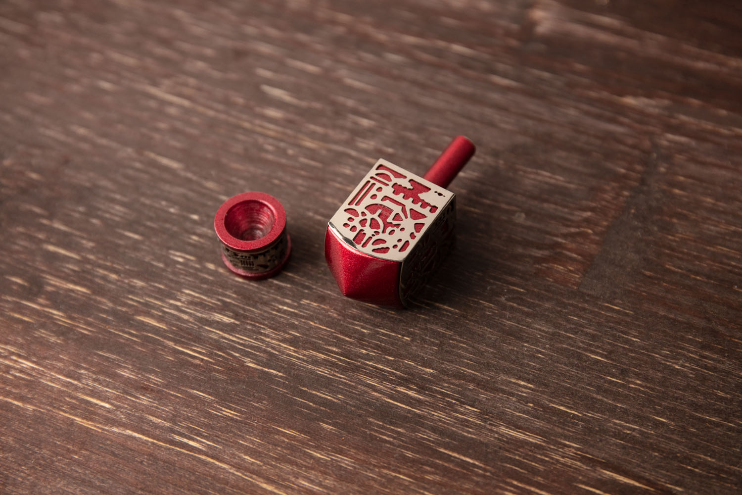 Designed by Emanuel Judaica, a renowned Israeli brand known for its innovative approach to Jewish art, this dreidel reflects a deep love for Jerusalem and Jewish tradition. The gleaming silver panels contrast beautifully with the deep red metallic base, creating a bold and modern aesthetic while still honoring heritage.