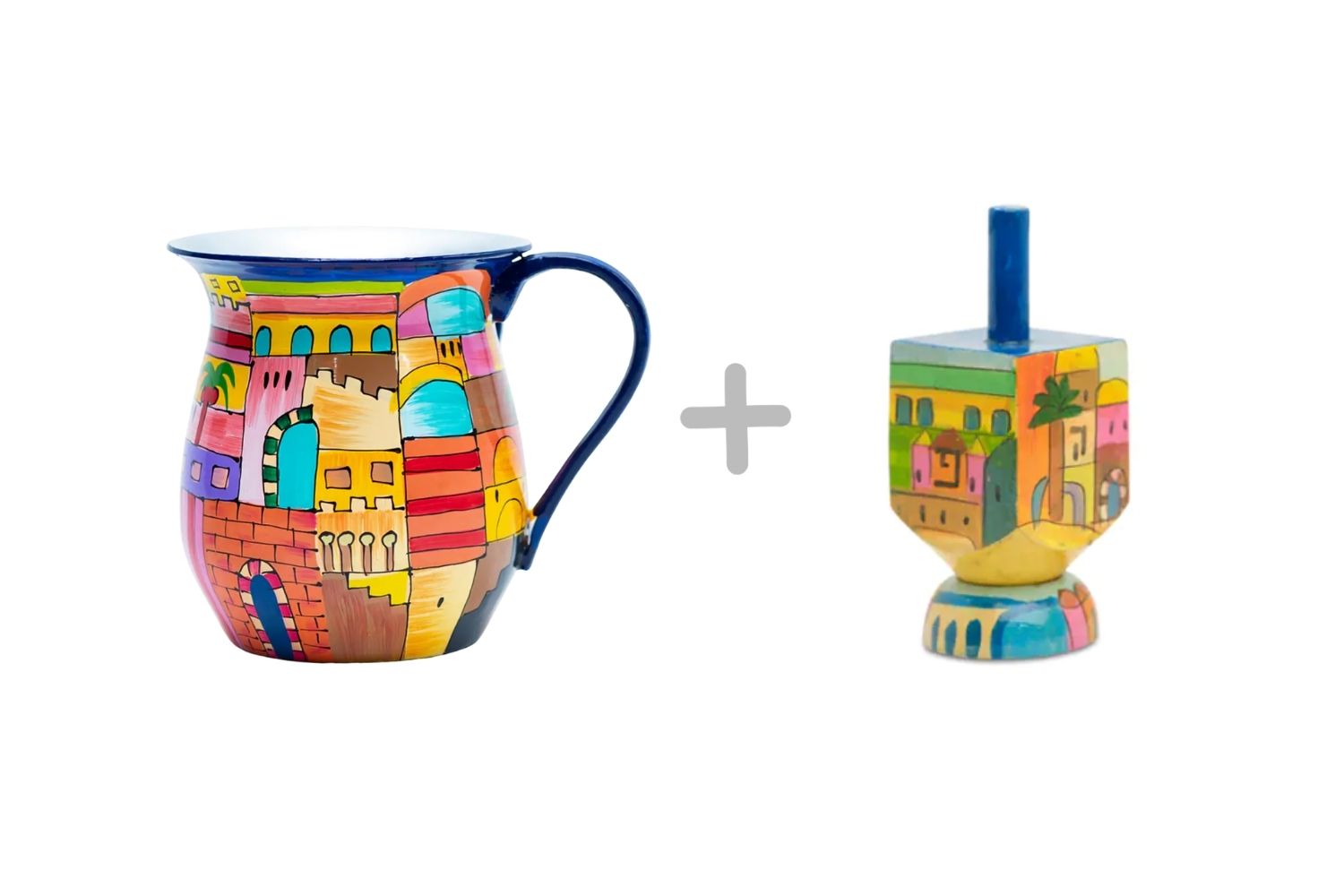 Both the Netilat Yadayim Cup and Jerusalem Dreidel bring a touch of the Holy Land to any home. They make beautiful gifts for weddings, holidays, or special occasions.