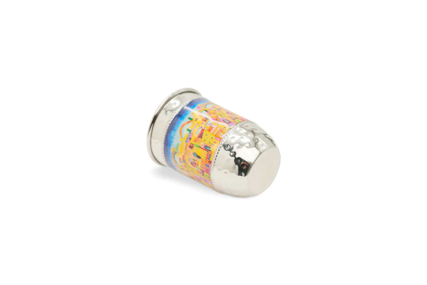 For a complete Shabbat experience, Emanuel’s Kiddush cup and saucer set brings the Holy City into your home. Perfectly sized for comfortable use, it holds the right amount of wine or grape juice for reciting Kiddush, making it an ideal gift for weddings, housewarmings, or bar mitzvahs.