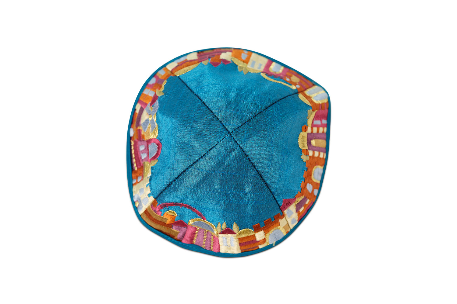 Embroidered Jerusalem Silk Kippah by Emanuel Judaica