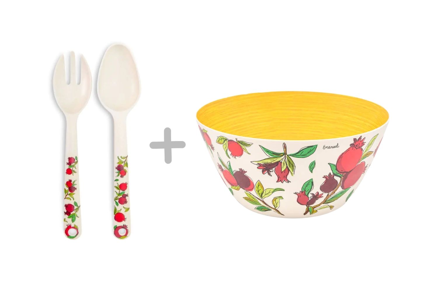 This charming bamboo bowl and matching serving spoon set bring a bright Israeli touch to your dining experience, whether used indoors or outdoors, perfect for everything from poolside lunches to Shabbat tables. Ideal for serving salads, side dishes, and entrees, these practical yet beautiful pieces make a thoughtful gift for any Israel lover, symbolizing a life full of mitzvot and good deeds.