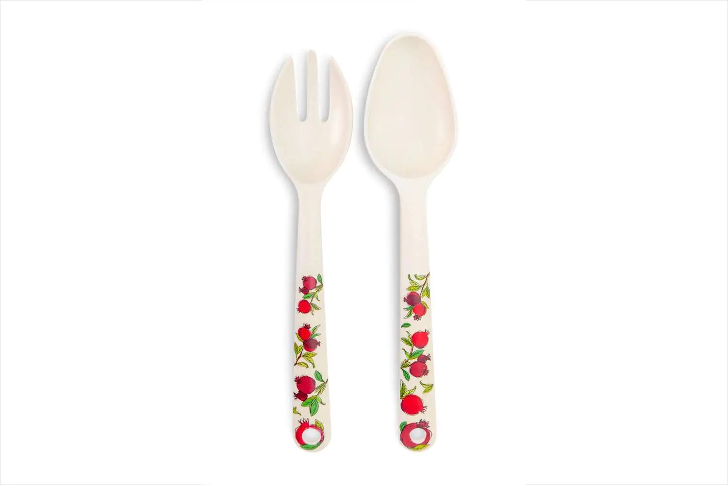 Large Bamboo Pomegranate Serving Bowl & Bamboo Pomegranate Serving Spoon Set