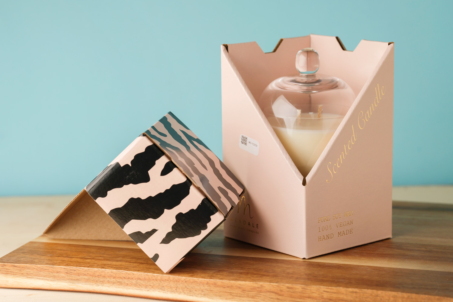 Large Handmade Candle in Glass Vessel with Bell Lid – Zebra Style