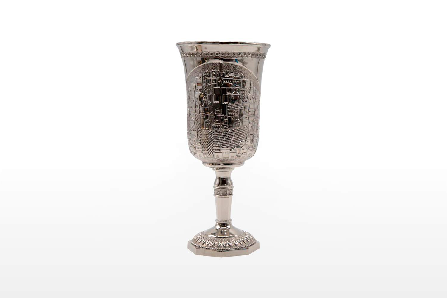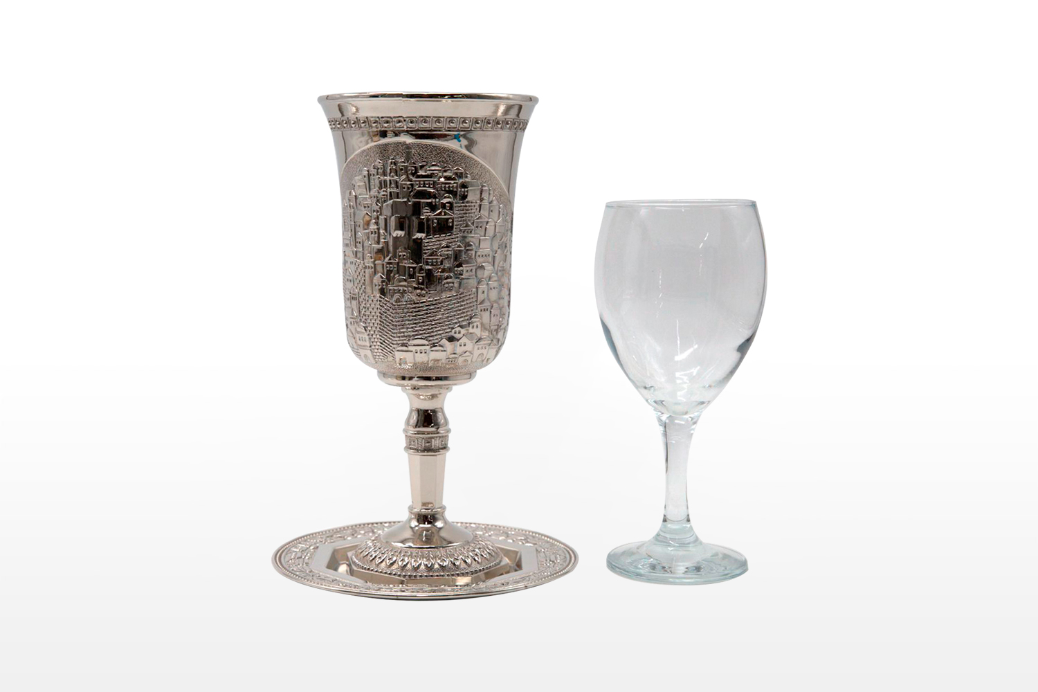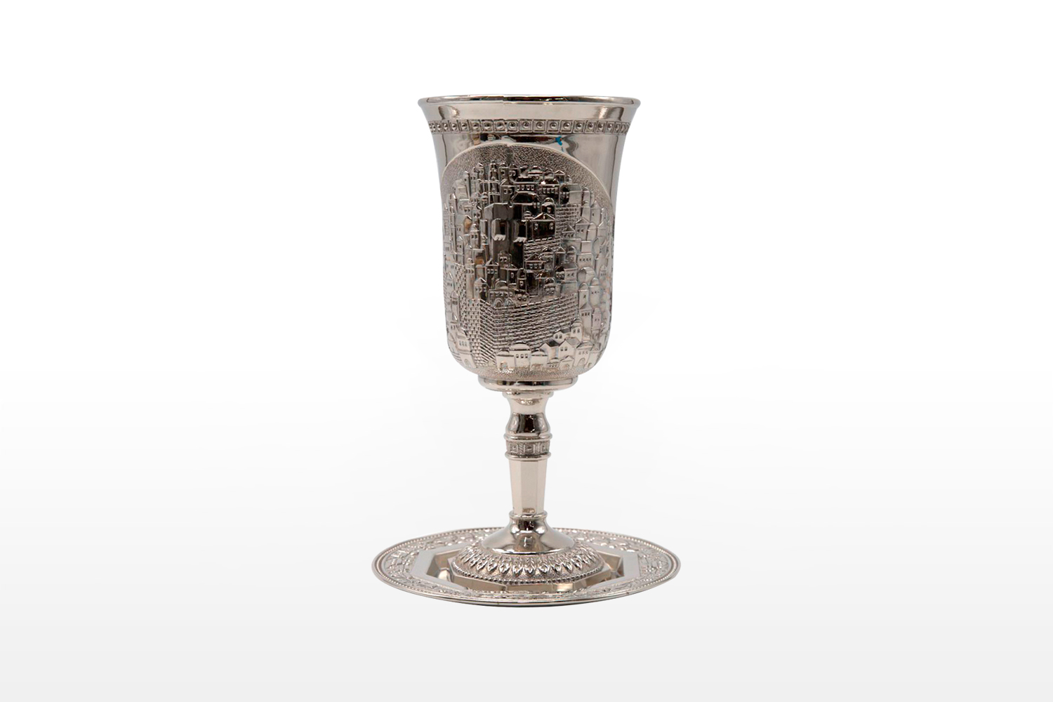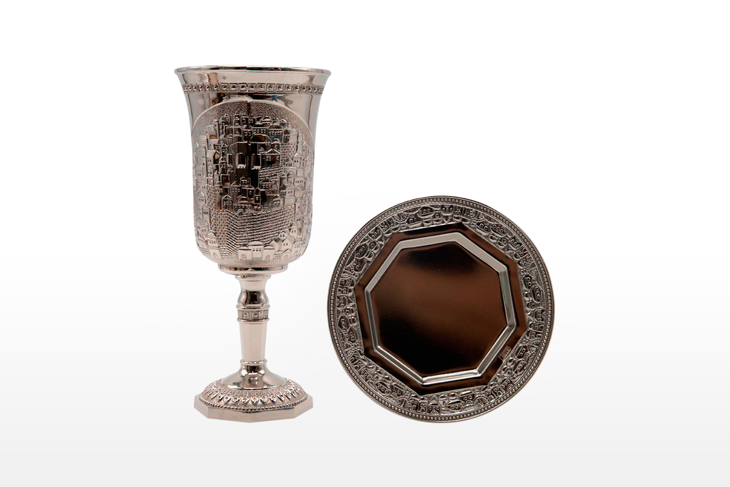 ART Judaica has created an exceptionally beautiful cup that is sure to add a touch of beauty to your table. The oversized nickel-plated cup sits on a companion plate. Both are decorated with images of the old city of Jerusalem which will add special resonance to the final words of the seder, “Next year in Jerusalem!”