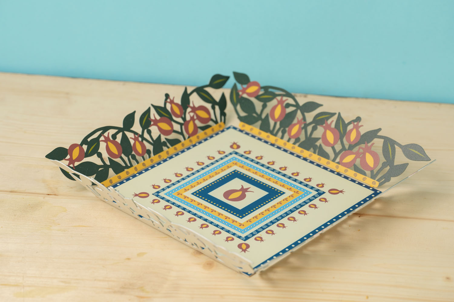 The lovely design introduces a touch of Israel into your home as it celebrates the pomegranate – one of the seven species of the land of Israel.