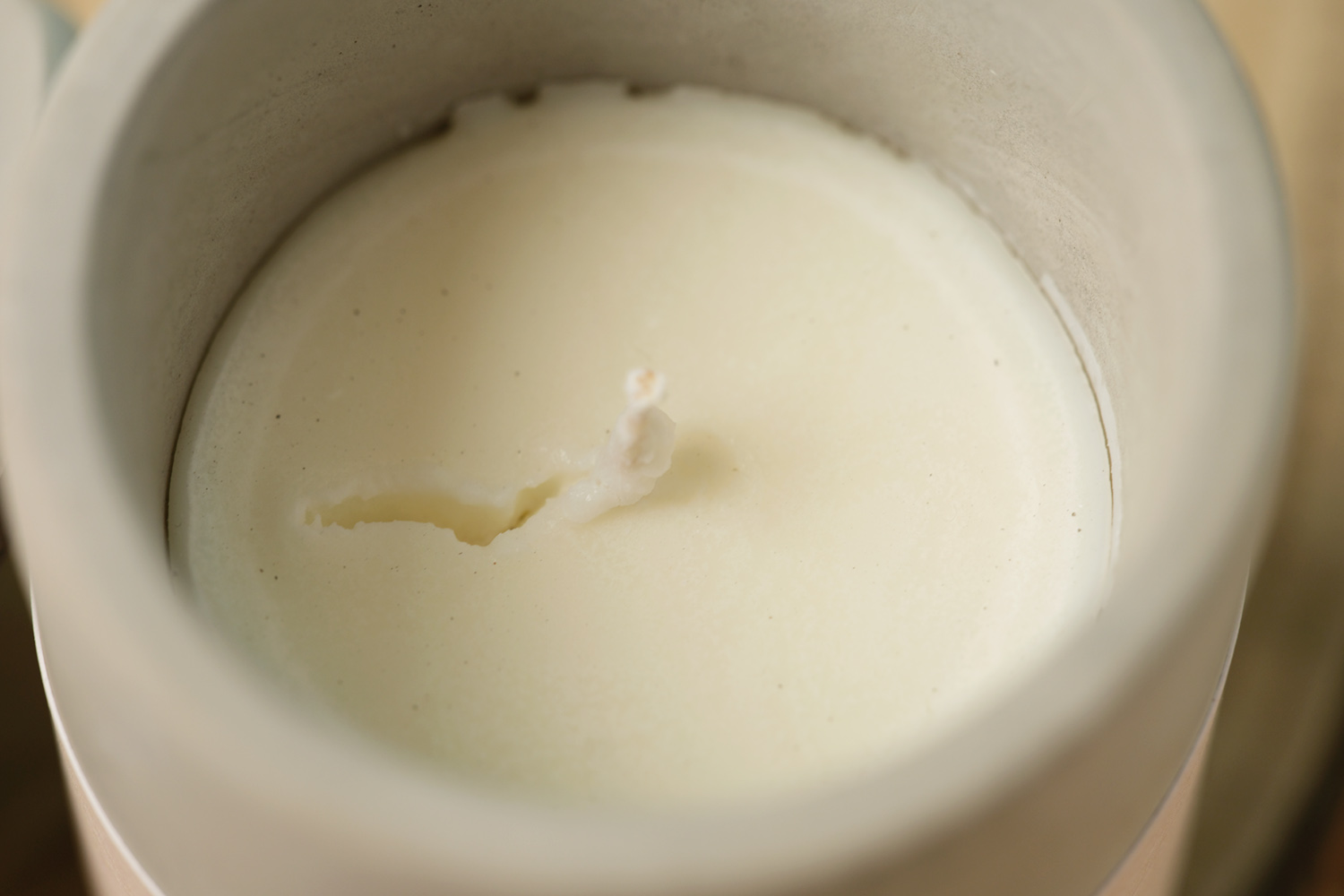 The container carries a raw, matte texture, with subtle variations that come from the casting process. Once the candle has finished, the vessel remains as a functional object that can be kept and reused.