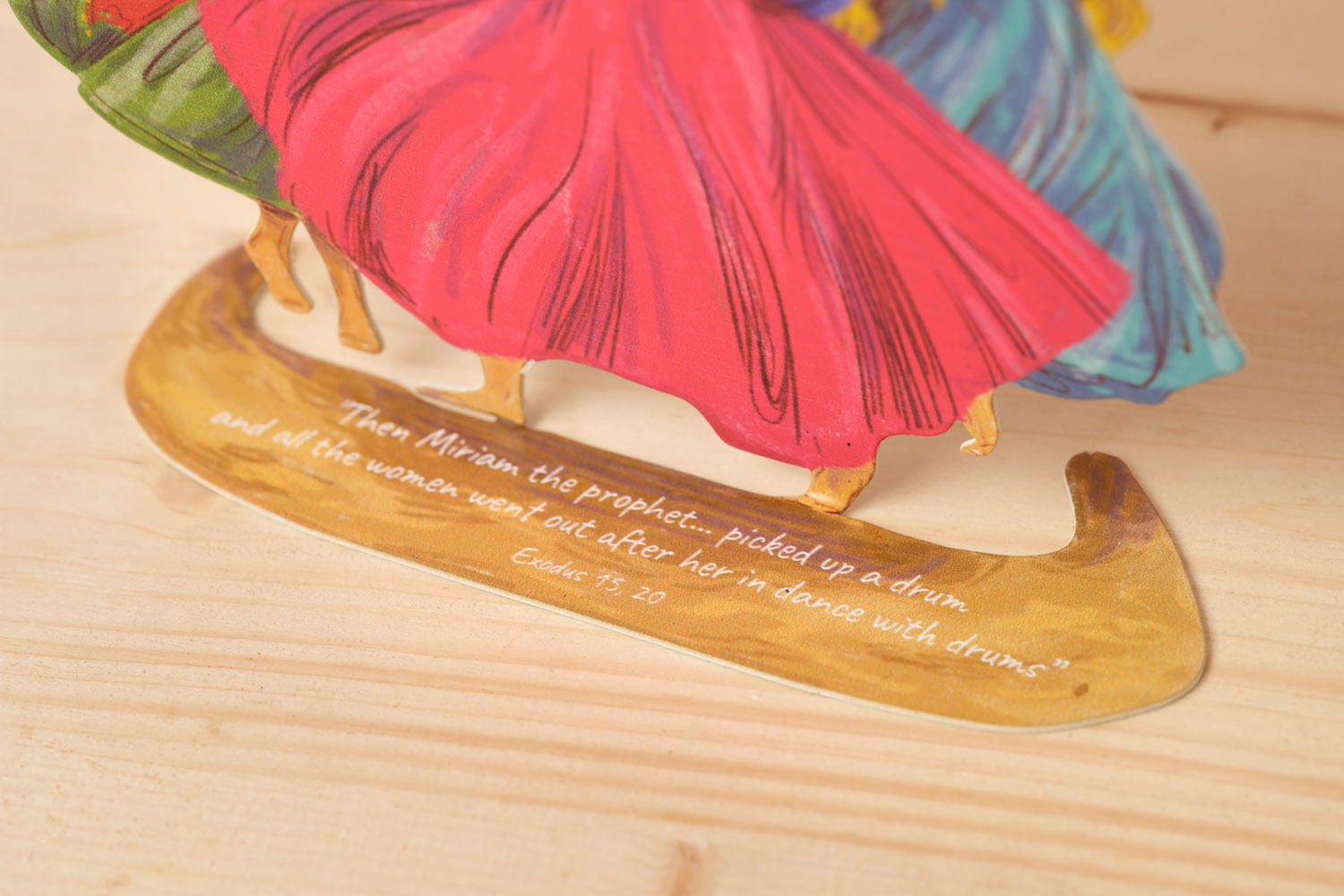 Celebrate the moment of faith and victory when Miriam led the Israelite women in joyful dance after crossing the Red Sea. This stunning freestanding art display captures that powerful scene, inspired by Exodus 15:20: “Then Miriam the prophet… picked up a drum, and all the women went out after her in dance with drums.”