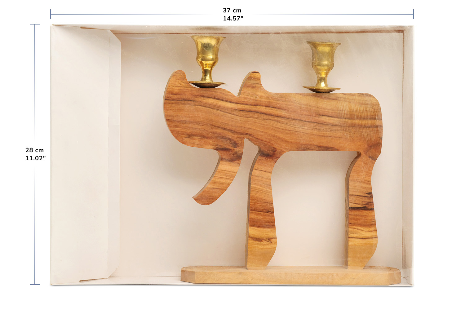 This candle stick combines the presence of olive wood, the meaning of Chai, and the sacred work of an Israeli artisan who pays close attention to every detail. It carries a clear link to Israel from the first cut to the final finish.