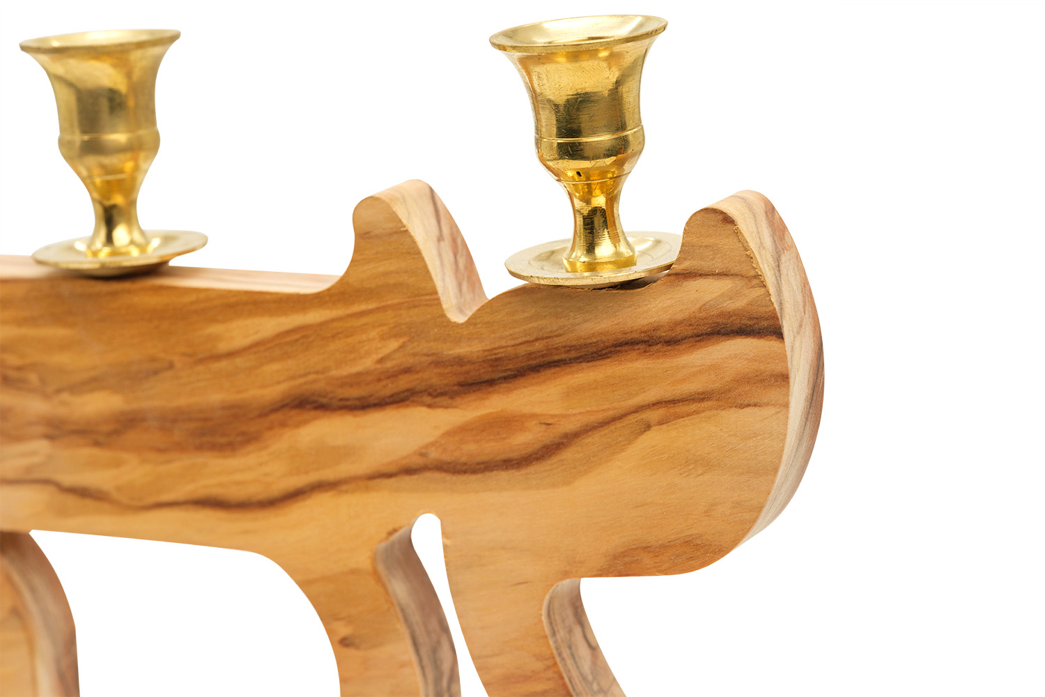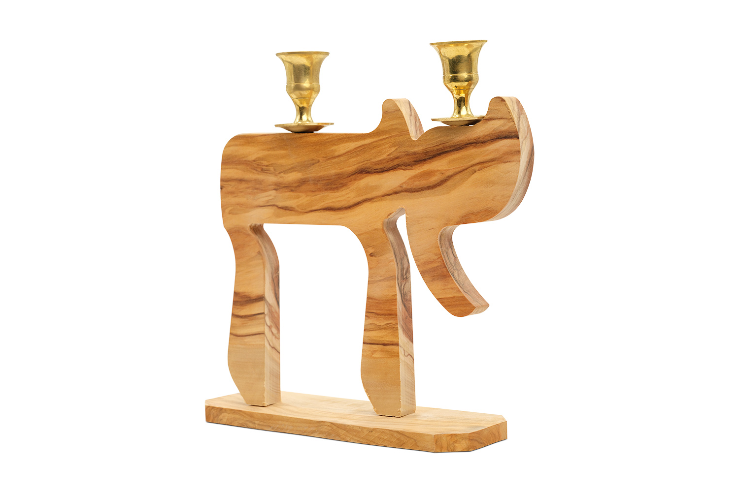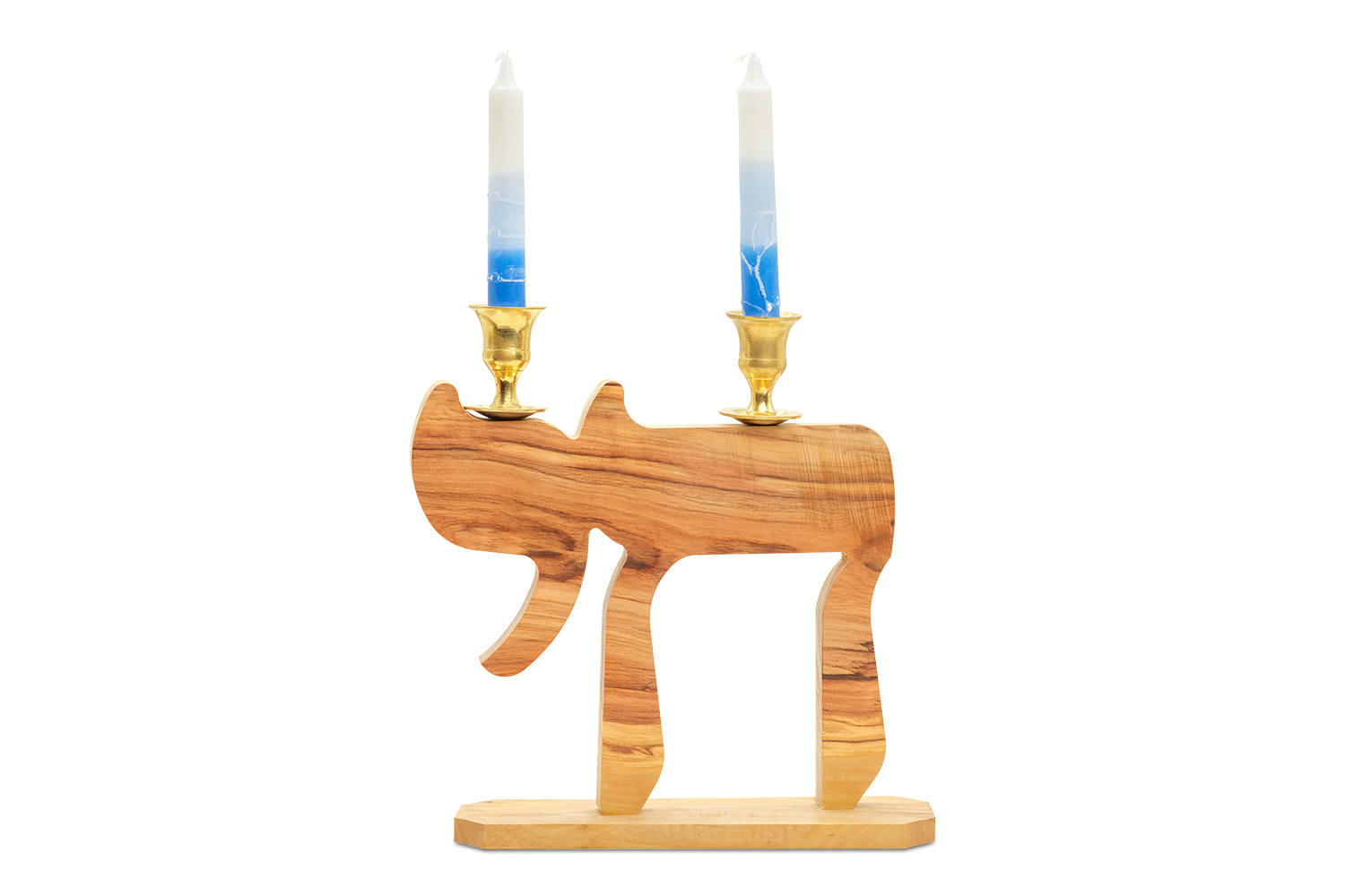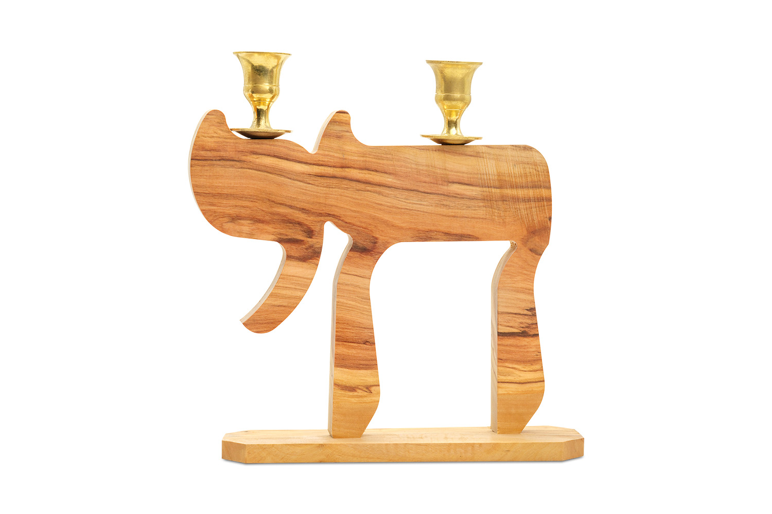 Olive Wood “Chai” Shabbat Candle Stick by Yosef Ohayon