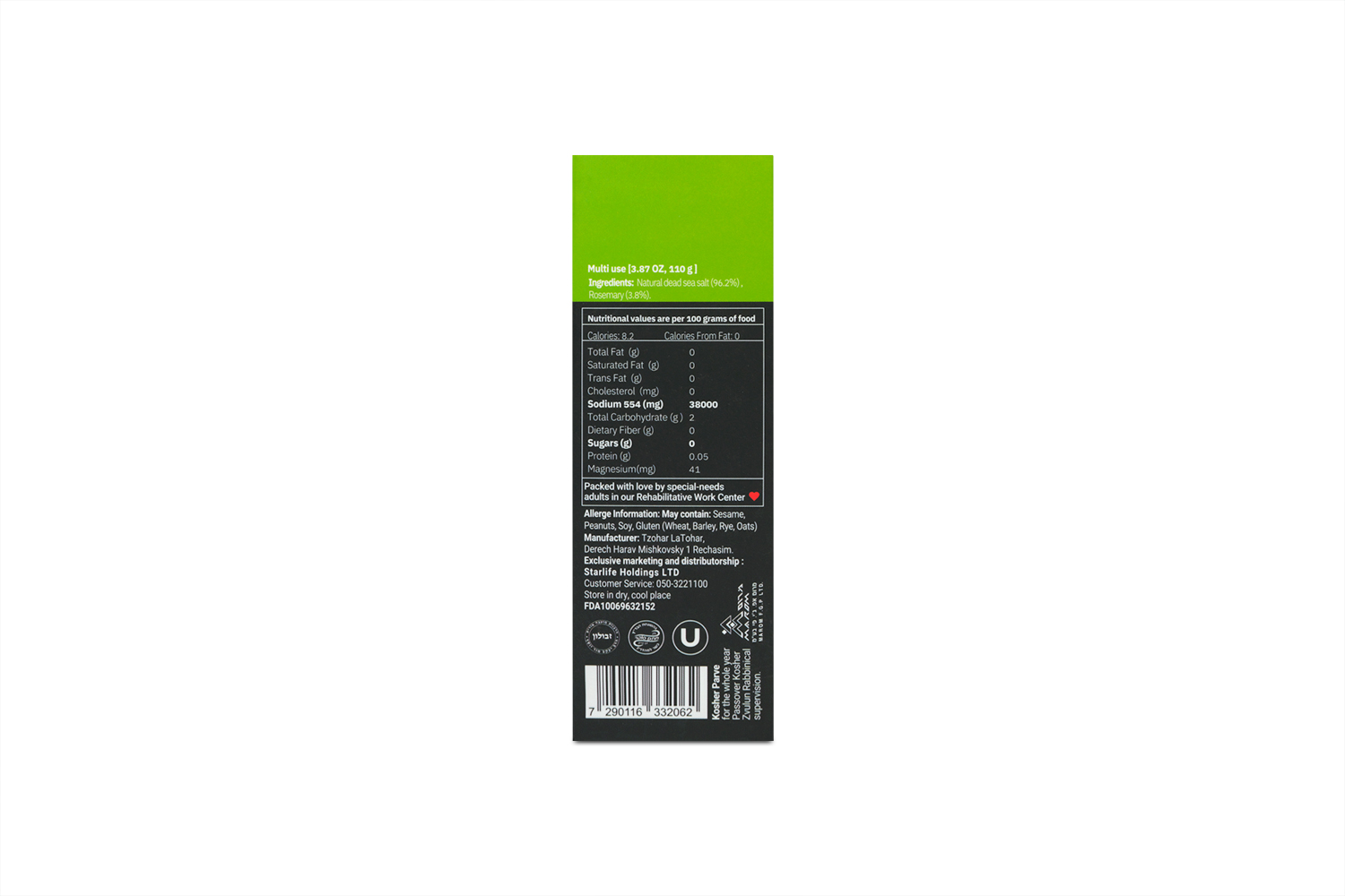 Salt 424 from the Dead Sea brings to your table all the qualities of the best salt in the world. It is collected in the traditional way, by hand, then dried by natural evaporation, and is certified as 100 percent natural for seasoning and cooking. With its deep taste and the addition of unique flavors, it provides an exceptional gourmet experience.