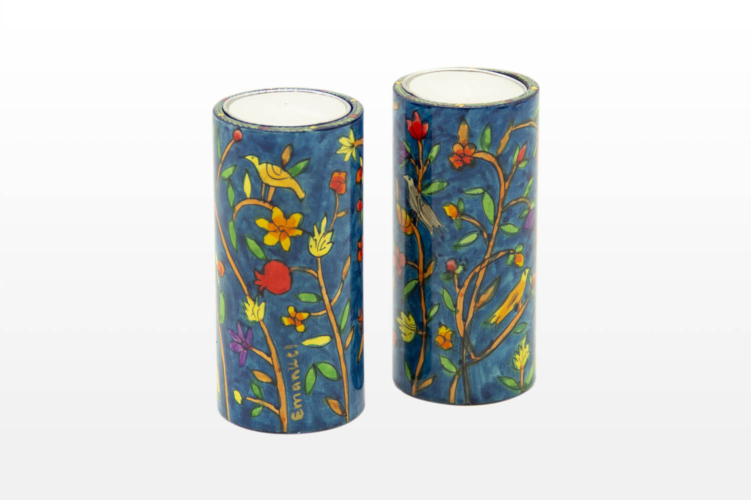 The candlesticks are designed to hold tealights and add a touch of color to your Shabbat candle lighting while bringing the spirit of the Holy Land into your home.