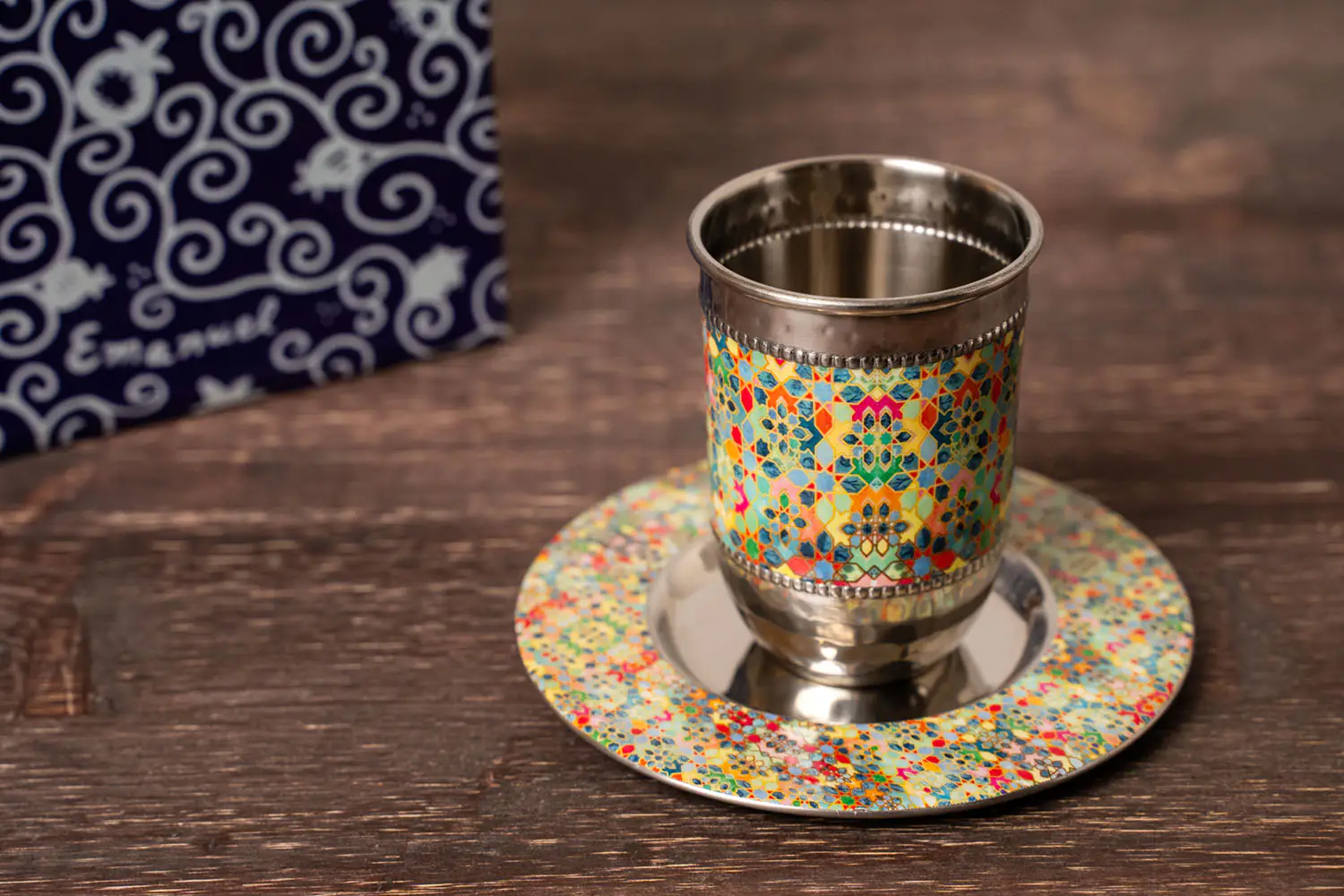 Emanuel has created a perfectly shaped and sized kiddush cup to use when reciting the Shabbat or festival kiddush. It sits comfortably in hands of all sizes and holds the required amount of wine or grape juice for making the blessing of Kiddush to open Shabbat and special holidays.