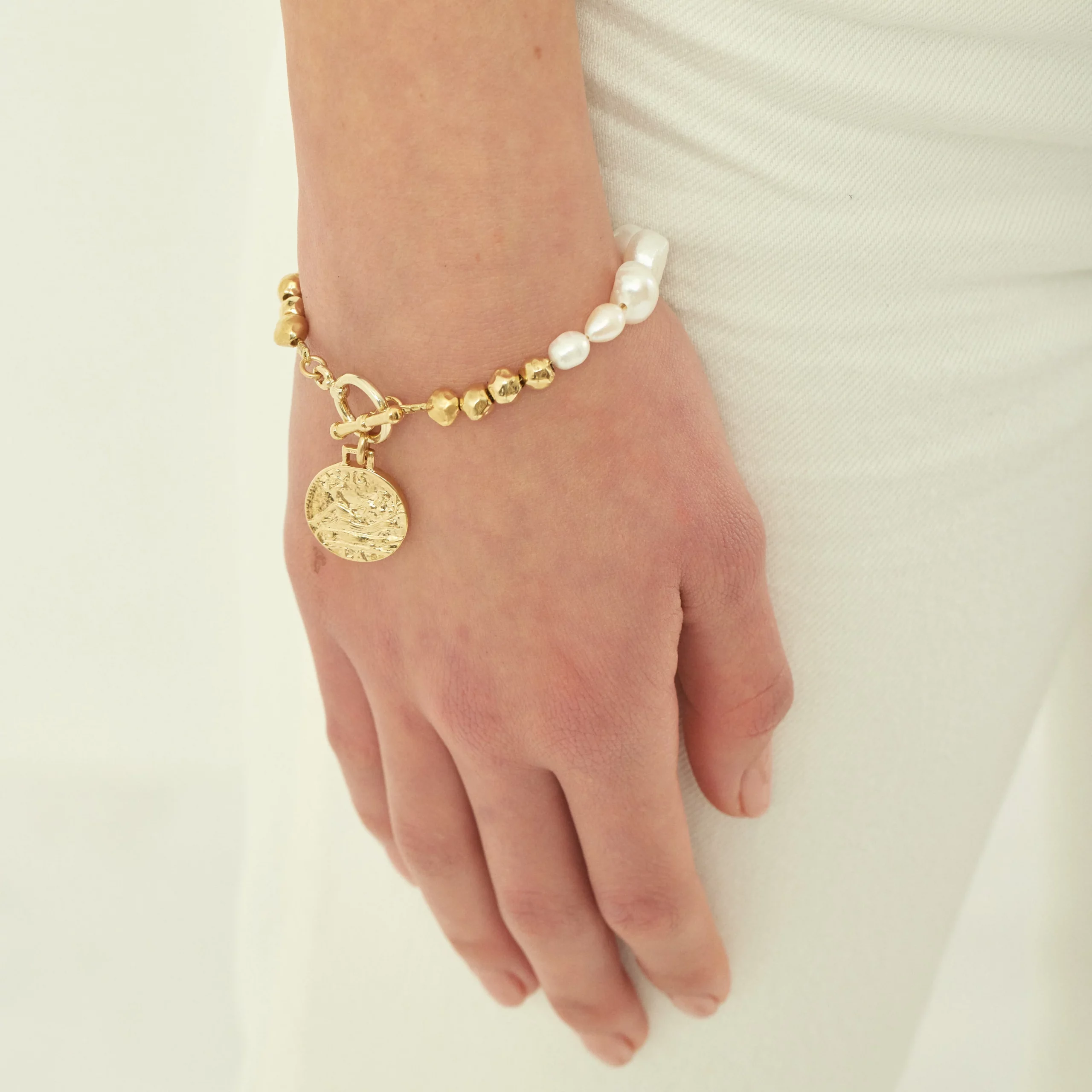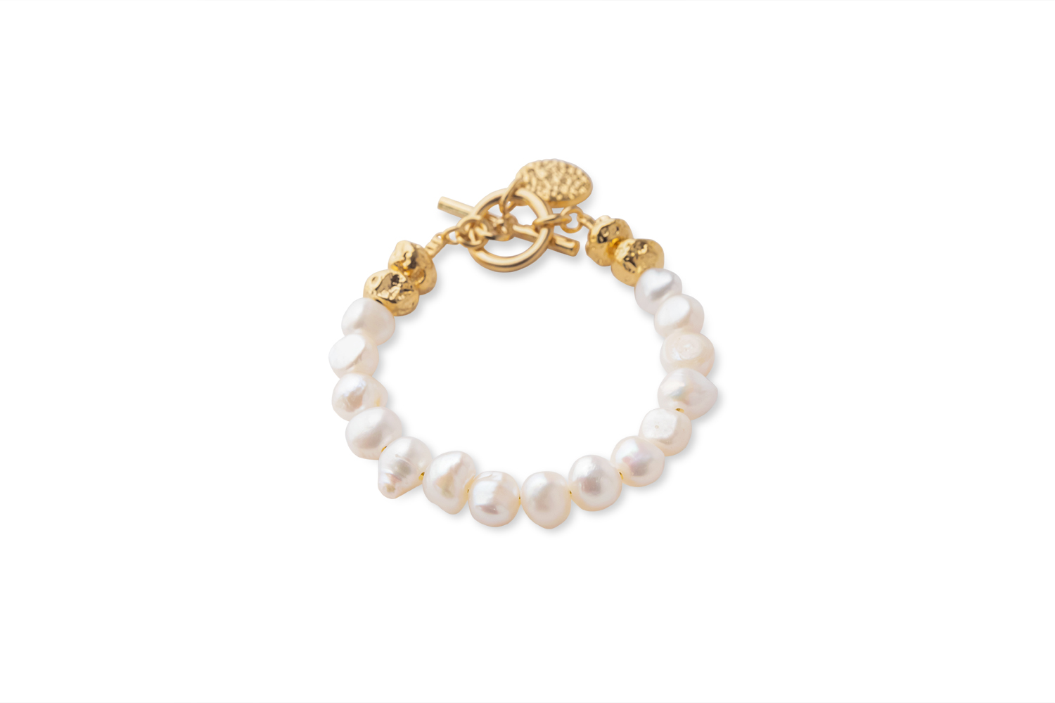 Pearl Bracelet with Gold Disk Accent
